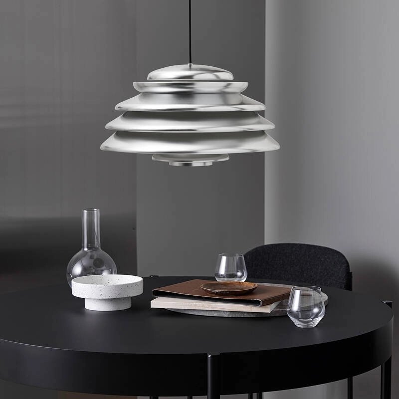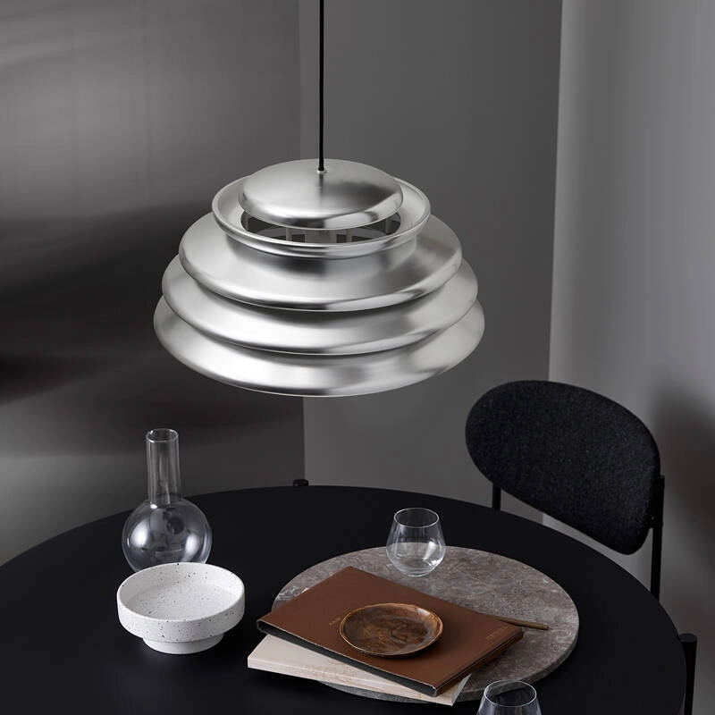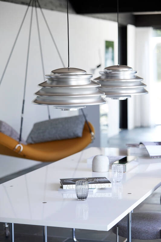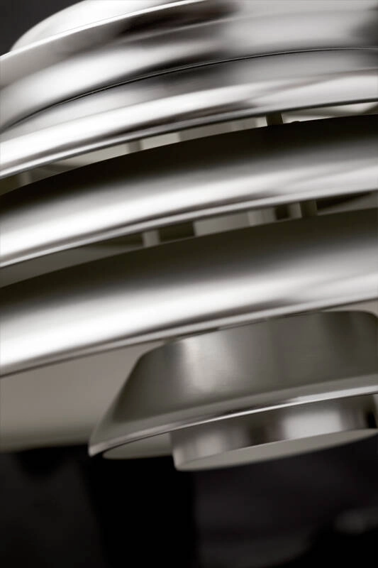Verner Panton était connu pour sa capacité à jouer avec les formes géométriques élémentaires et à s’inspirer des formes organiques trouvées dans la nature ; et la suspension Hive ne fait pas exception. Réalisé à partir de plusieurs diffuseurs concentriques de différentes tailles, le design de la suspension Hive offre une qualité sculpturale très caractéristique, tout en assurant une lumière non éblouissante. Elle émet une lumière directe vers le bas très généreuse, complétée par une lumière douce et diffuse sur les côtés. Comme beaucoup de luminaires créés par Verner Panton, l’expression unique de la suspension Hive se démarque même lorsqu’elle est éteinte. C’est l’éditeur Verpan qui donne vie à ce luminaire pour la première, grâce aux dessins originaux du designer.
