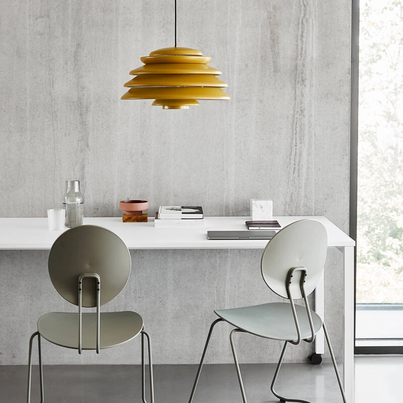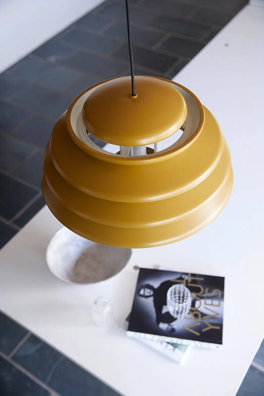 Verner Panton était connu pour sa capacité à jouer avec les formes géométriques élémentaires et à s’inspirer des formes organiques trouvées dans la nature ; et la suspension Hive ne fait pas exception. Réalisé à partir de plusieurs diffuseurs concentriques de différentes tailles, le design de la suspension Hive offre une qualité sculpturale très caractéristique, tout en assurant une lumière non éblouissante. Elle émet une lumière directe vers le bas très généreuse, complétée par une lumière douce et diffuse sur les côtés. Comme beaucoup de luminaires créés par Verner Panton, l’expression unique de la suspension Hive se démarque même lorsqu’elle est éteinte. C’est l’éditeur Verpan qui donne vie à ce luminaire pour la première, grâce aux dessins originaux du designer.
