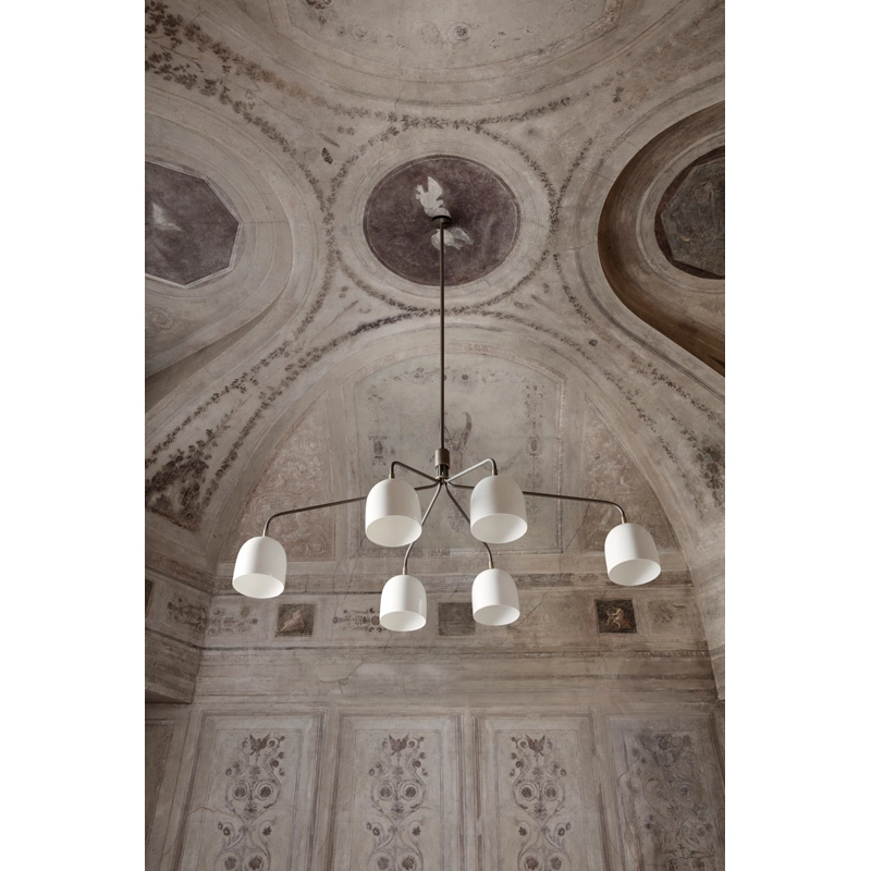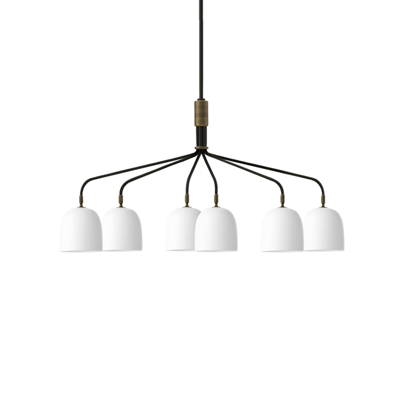 Avec la collection Howard, les designers de Space Copenhagen ont voulu rendre hommage à la ville de New York, à son esthétique industrielle où dominent les métaux sombres. Conçue à l’origine pour l’hôtel Howard à Manhattan dans le quartier de SoHo, la série de luminaires Howard s’est inspirée de la matérialité et des couleurs du quartier de l’hôtel. Avec des références subtiles à l’atmosphère industrielle de New York, les luminaires Howard incorporent des détails raffinés et élégants. C’est une gamme complète de luminaires possédant un design cohérent, une esthétique unifiée qui peut être déployée dans un intérieur, un restaurant ou un hôtel. Les différents luminaires fonctionnent aussi bien seuls qu’en compositions de plusieurs modèles. Le lustre Howard est le résultat d’une collaboration étroite entre Space Copenhagen et Gubi, qui ont utilisé des technologies de pointe, pour assurer un design optimal. Disponible avec quatre ou six bras, le lustre Howard est doté d’une expression forte, sophistiquée et moderne. Il s’impose aussi bien dans une salle à manger que dans un restaurant ou dans le hall d’accueil d’un hôtel. Howard est disponible avec une finition Gunmetal à l’extérieur et laiton brossé à l’intérieur, apportant de la chaleur à la lumière diffusée vers le bas. La version en porcelaine, quant à elle, crée une lumière plus diffuse, pour une ambiance douce.