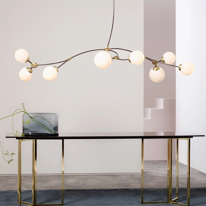Les suspensions Ivy sont éditées par CTO Lighting. Leur esthétique s’inspire grandement du printemps londonien et de la croissance organique, qui influencent le choix d’une structure florale. L’ossature métallique des suspensions Ivy est ponctuée de plusieurs diffuseurs en verre opalin ou fumé, donnant l’illusion d’une plante qui se courbe en cherchant la lumière du soleil, et diffuse ainsi un large bassin de lumière ambiante dans la pièce. Disponible dans différentes configurations, la collection Ivy CTO Lighting offre des options pour une variété d'utilisations et d'espaces.