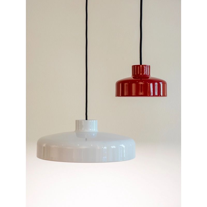 Lacquer est une collection de suspensions lumineuses dessinée par Keiji Takeuchi. La forme, la couleur et la finition sont inspirées par les bols traditionnels japonais laqués. La source lumineuse est une LED intégrée avec un diffuseur concave qui donne une lumière uniforme et haute qualité. Editée par la marque Nine, la suspension Lacquer est disponible en trois tailles et trois couleurs : un gris très clair, un noir profond et le rouge de l’inspiration originale.