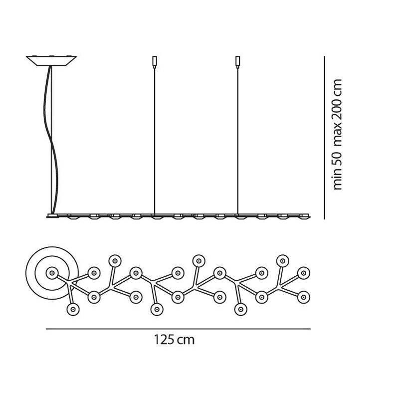 Dessinée par Michele de Lucchi et Alberto Nason, Led Net Line est une suspension poétique qui allie technologie et référence à la nature. Les 18 LED du luminaire sont fixés sur une structure qui fait penser à une plante ou à la composition des flocons de neige. La structure est réalisée en aluminium peint. Chaque led est munie d'une lentille en méthacrylate transparent et d'un porte-lentille en méthacrylate satiné. Editée par Artemide, cette suspension crée un éclairage diffus à la fois doux et original au-dessus de la table de salle à manger ou dans une cuisine.