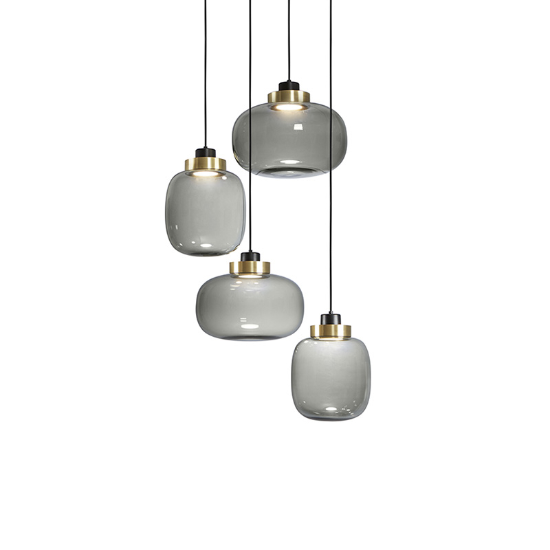 La suspension Legier 557.14 de Tooy est composée de structures en laiton, associées à des diffuseurs en verre fumé. Ces pièces en verre sont soufflées selon les techniques traditionnelles des artisans de Murano. Elégante, polyvalente et résistante, la suspension Legier 557.14 peut être suspendue dans une entrée, une cage d'escaliers ou au-dessus d'une table de repas. Editée par la maison italienne Tooy, la suspension Legier 557.14 se compose de quatre luminaires de deux dimensions différentes (Ø 25 et 35 cm). Legier 557.14 se présente comme une véritable composition lumineuse qui habille élégamment l'espace, du plus sobre au plus opulent.