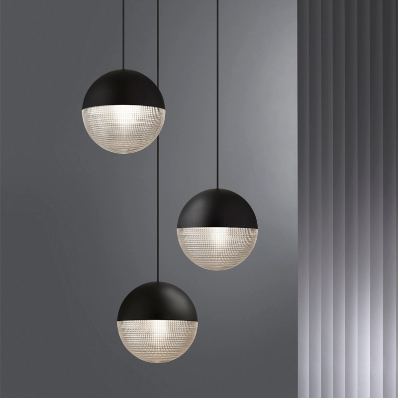 Inspiré par les lentilles télescopiques et l'art des réfractions horizontales et verticales, Lens Flair est un assemblage de deux demi-sphères, combinant de façon homogène le solide et le transparent. Le diffuseur en polycarbonate transparent quadrillé émet une douce lumière diffuse. Il est juxtaposé à une demi-sphère opaque en acier finition laiton brossé ou noir mat, qui crée un contraste net. La collection Lens Flair de Lee Broom est disponible en version suspension, lampe de table, mais aussi dans une version plus petite, Little Lens Flair. Seule ou en composition de plusieurs éléments, Lens Flair s'impose dans les environnements contemporains.