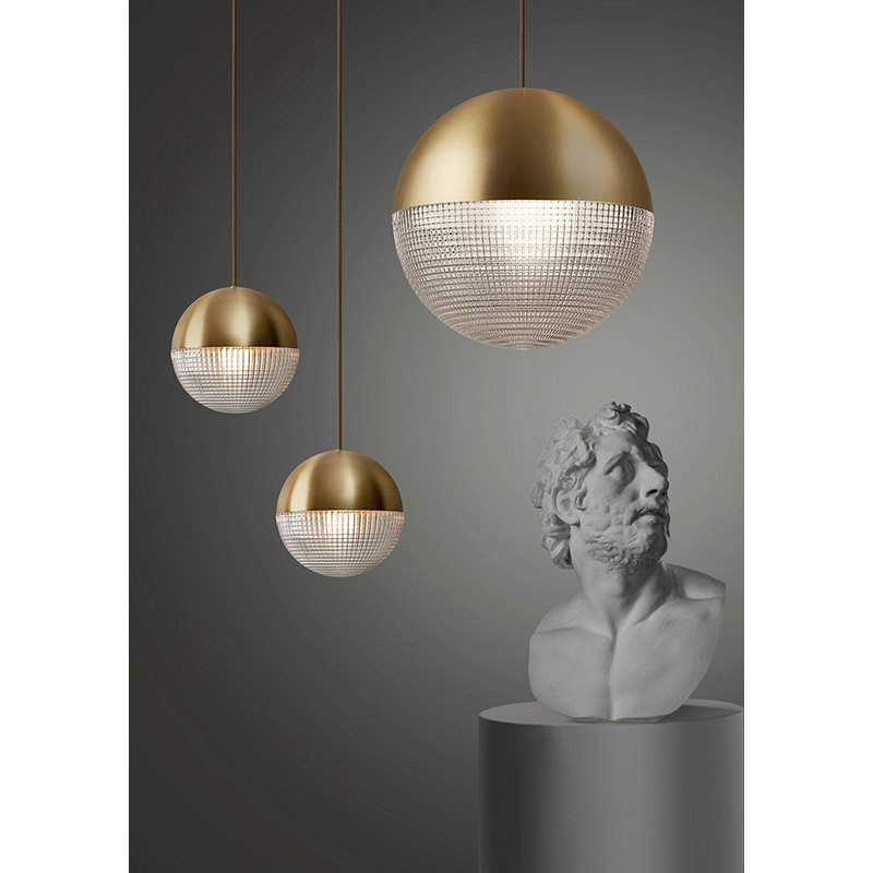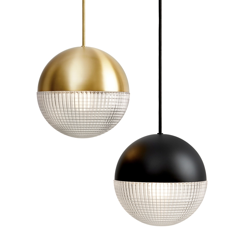 La dernière née, Little Lens Flair de Lee Broom, est une adaptation de la collection Lens Flair. Inspiré par les lentilles télescopiques et l'art des réfractions horizontales et verticales, Little Lens Flair est un assemblage de deux demi-sphères, combinant de façon homogène le solide et le transparent. Le diffuseur en polycarbonate transparent quadrillé émet une douce lumière diffuse. Il est juxtaposé à une demi-sphère opaque en acier finition laiton brossé ou noir mat, qui crée un contraste net. Cette pièce magnifique est disponible sous forme de suspension, lampe de table et lustre.