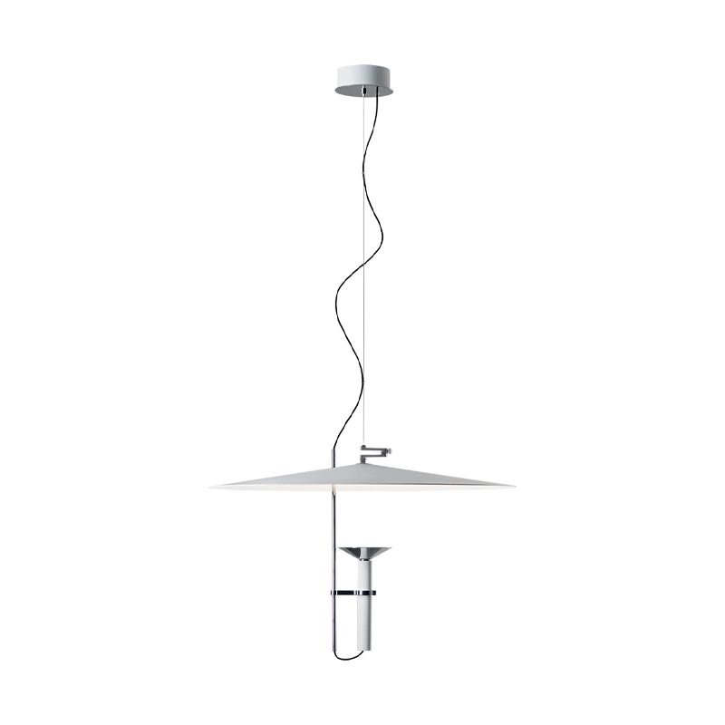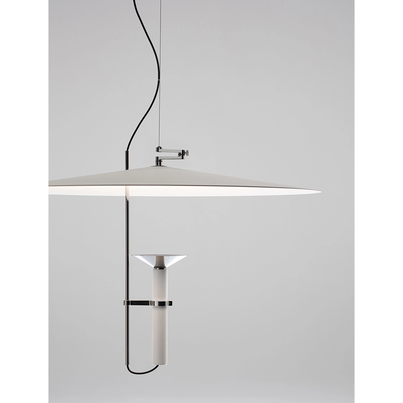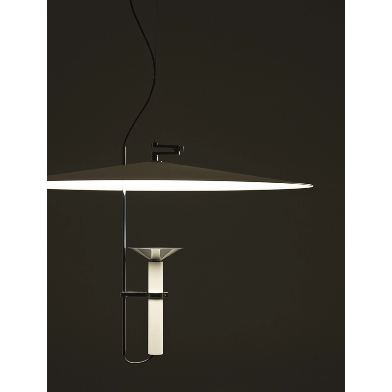 La suspension Luna de Stilnovo est subtile et légère, dotées de proportions minimalistes et d'une émission douce. La lumière est projetée sur un disque réflecteur pivotant, qui la diffuse à son tour sur le plan de manière confortable. Un système breveté d'équilibrage des pivots permet d'incliner facilement le disque et donc la projection de la lumière. La collection Luna comprend également le lampadaire Luna.