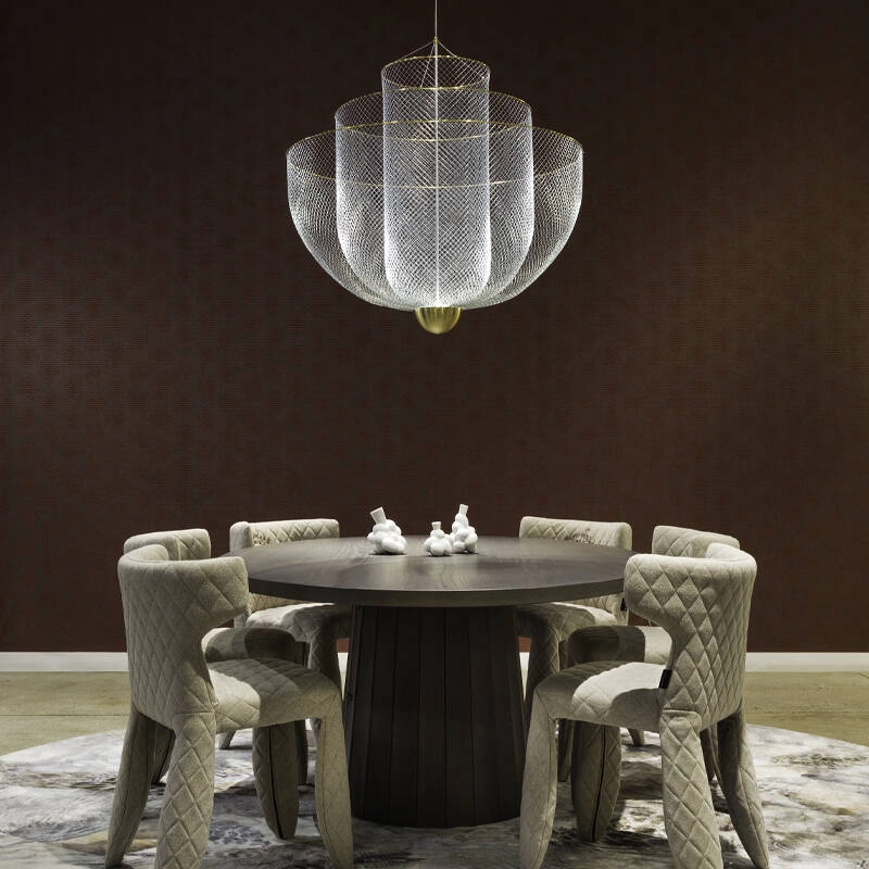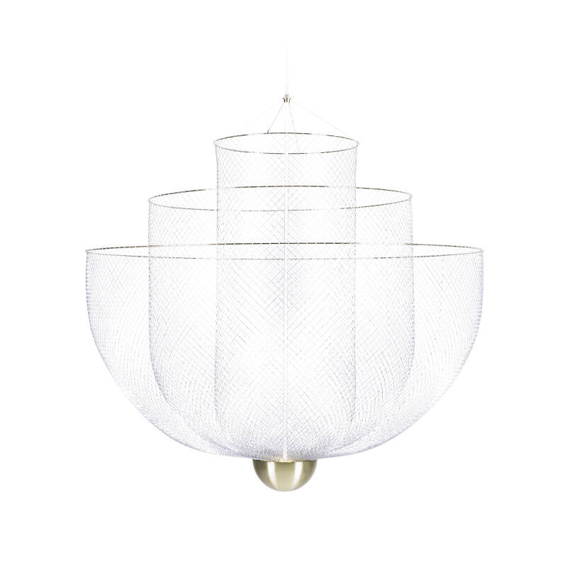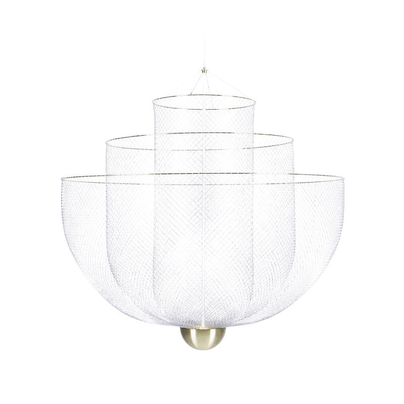 Avec Meshmatics, le designer Rick Tegelaar a conçu pour MOOOI un lustre issu d’un étonnant processus de création.  Au premier coup d’œil, cette suspension attire le regard par son apparence sophistiquée. C’est un matériau bien plus humble, le treillis métallique, qui une fois façonné et travaillé donne corps au surprenant luminaire Meshmatics. Sa silhouette est obtenue grâce à une gamme d’outils élaborées spécifiquement pour sa conception, pour la modeler avec précision. Le plein potentiel de ce matériau fin et flexible est étiré et capturé dans trois délicates pièces de métal. La suspension Meshmatics se prête élégamment à la décoration et l’éclairage de tous types d’espaces, grâce à son émission lumineuse diffuse et chaleureuse.