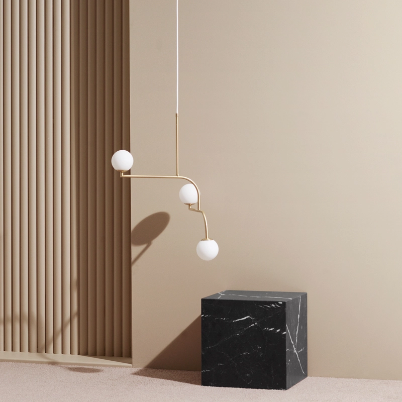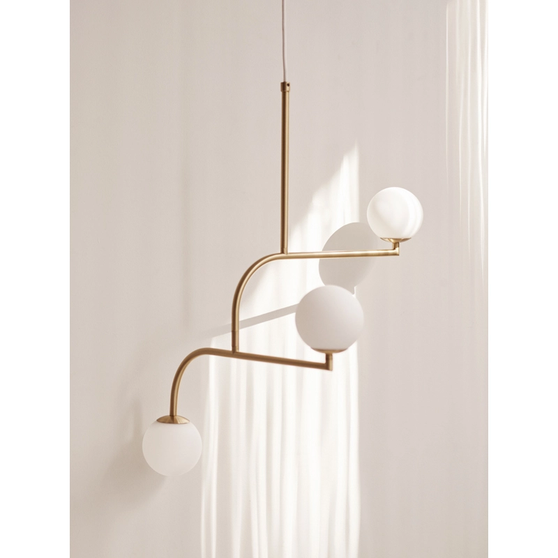 Mobil, Monika Mulder a puisé son inspiration dans l’architecture New-Yorkaise : les balcons typiques en métal noir et les lampadaires ronds du Brooklyn Bridge. Ces ingrédients ont permis de créer la suspension