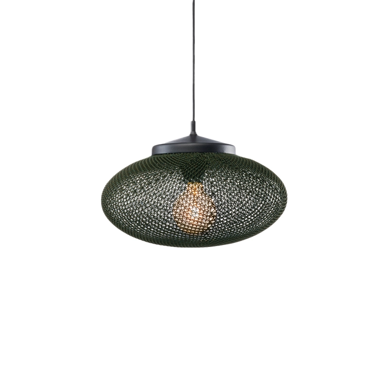Monsieur Ellipse fait partie de la collection Monsieur Tricot, une gamme d'éclairages pour l'extérieur éditée par Tribu, tricotés et crochetés à la main pour transformer votre terrasse et jardin en un lieu féérique à la nuit tombée. La suspension Monsieur Ellipse conçue par le designer belge Ilia Eckardt, allie techniques traditionnelles, matériaux performants et technologie moderne.
