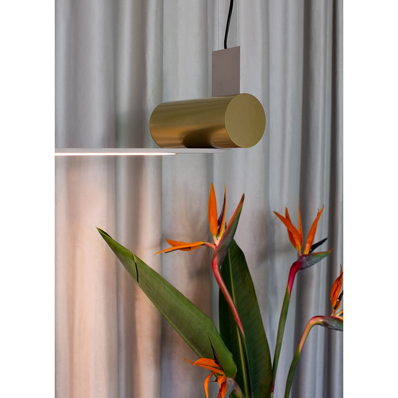 Tooy présente la collection Nastro, une série de suspensions, d'appliques et de lampes à poser dessinées par Studiopepe. La suspension Nastro 563.21, comme l'ensemble de la collection Nastro, se caractérise par une structure en bandeau d'aluminium revêtu de poudre époxy, ornée de deux éléments cylindriques qui contrebalancent la souplesse du luminaire dans un équilibre visuel raffiné. La source lumineuse de la suspension est constituée d'une bande LED dimmable. Editée par Tooy, la suspension Nastro 563.21 est disponible dans de nombreuses finitions, pour s'accorder avec votre espace.