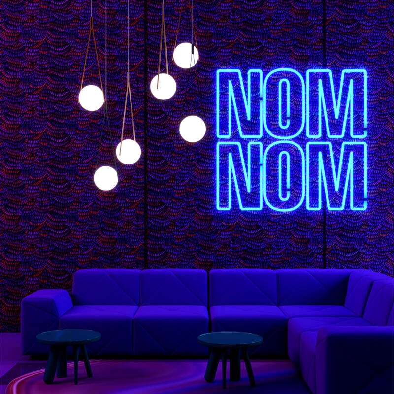 La suspension NomNom d'Odin Visser éditée par MOOOI, est une conception d'éclairage tout à fait moderne. Ce luminaire de taille modeste synthétise parfaitement l’art de l’omission, minimalisme qui renforce son caractère unique. Le diffuseur opaque et sphérique de NomNom est retenu en équilibre entre deux fines baguettes métalliques, presque invisibles, ce qui donne la sensation aérienne que la source lumineuse est suspendue dans le vide. En tant que luminaire autonome, il n'y a aucun moyen de contourner l'élégance ludique de la suspension NomNom, mais son effet est multiplié lorsqu’elle est accompagnée d’autres lampes, en bouquet ou alignées.