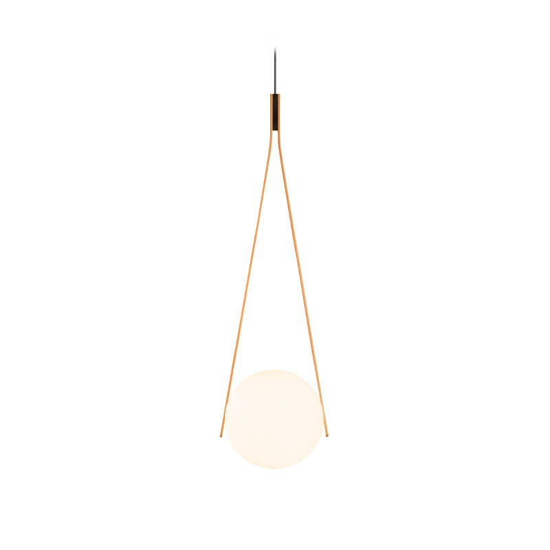 La suspension NomNom d'Odin Visser éditée par MOOOI, est une conception d'éclairage tout à fait moderne. Ce luminaire de taille modeste synthétise parfaitement l’art de l’omission, minimalisme qui renforce son caractère unique. Le diffuseur opaque et sphérique de NomNom est retenu en équilibre entre deux fines baguettes métalliques, presque invisibles, ce qui donne la sensation aérienne que la source lumineuse est suspendue dans le vide. En tant que luminaire autonome, il n'y a aucun moyen de contourner l'élégance ludique de la suspension NomNom, mais son effet est multiplié lorsqu’elle est accompagnée d’autres lampes, en bouquet ou alignées.