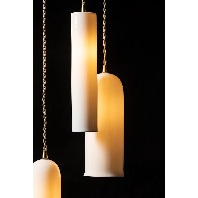 La suspension Olympia 4, faisant partie de la collection de luminaires éponyme, est conçue par la designer et céramiste Anita Le Grelle et éditée par Serax. Fabriquée en porcelaine bone china ultrafine, la suspension Olympia 4 met en valeur un abat-jour cylindrique intemporel. Elle s'adapte aisément à n'importe quel espace de vie en lui apportant du volume. Dotée d'un serre-câble en laiton et d'un cordon doré, elle exhale un raffinement incomparable. La suspension Olympia 4, finie à la main, reflète l'esthétique soignée d'Anita Le Grelle ainsi que l'ensemble de sa collection de luminaires pour Serax.