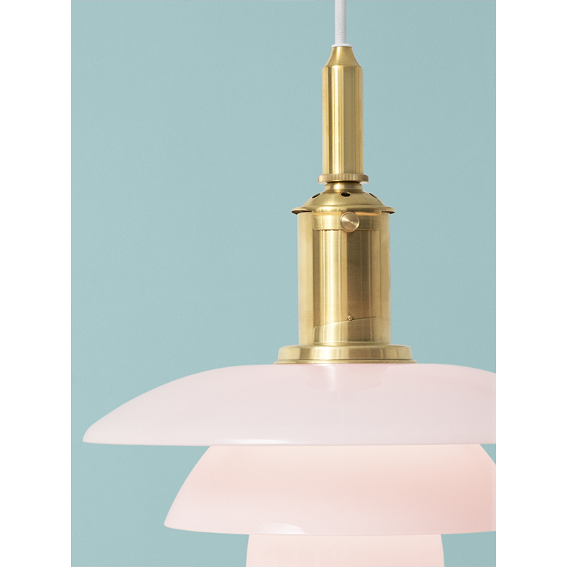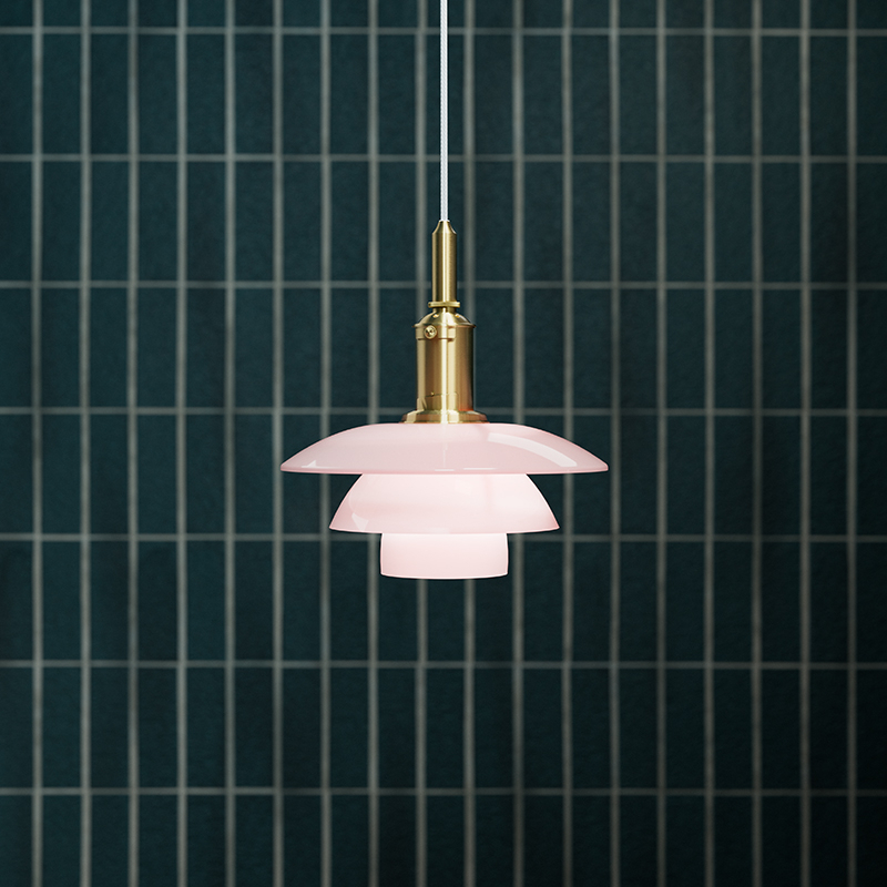 suspension PH 3/3 Pale Rose allie style et élégance, avec ses magnifiques abat-jours en verre rose pâle soufflé à la bouche et au dessous sablé. La