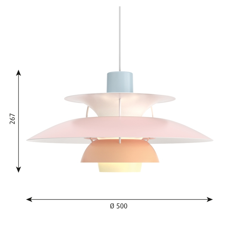 Dessinée en 1958 par Poul Henningsen pour Louis Poulsen, la suspension PH 5 tient son nom du diamètre de 50 cm de l’abat-jour principal du luminaire. À l’époque de sa création, personne ne se doutait que PH 5 finirait par incarner l’éclairage caractéristique de Poul Henningsen. La suspension se distingue par son éclairage 100 % anti-éblouissant, indépendamment de la source lumineuse employée et de la manière dont la lampe est installée. La suspension PH5 de Louis Poulsen émet une lumière dirigée vers le bas et vers les côtés et s’éclaire donc elle-même. Intemporelle, PH 5 continue d'égayer les intérieurs les plus modernes grâce à sa palette de couleurs.