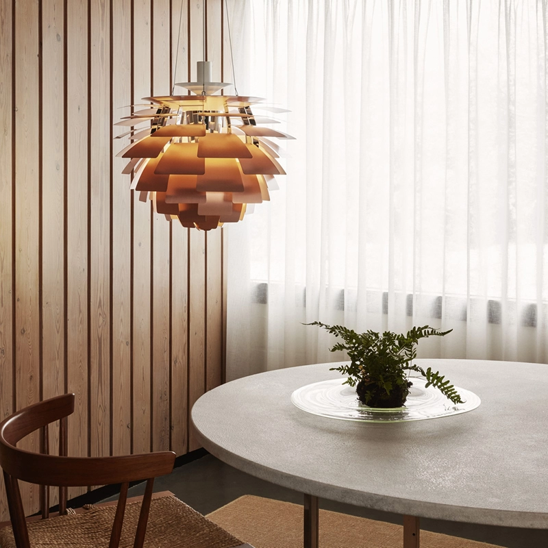 Né en 1894 au Danemark, Poul Henningsen étudie l’architecture à l’école Polytechnique de 1915 à 1917. Il étudie à l’École technique de Frederiksberg, au Danemark, de 1911 à 1914, puis à l’Université technique de Copenhague de 1914 à 1917, sans jamais être diplômé en architecture. En 1920, le designer commence son activité d’architecte en free-lance mais travaille également comme journaliste en écrivant de nombreux articles pour divers journaux. Ecrivain et designer, il est une figure emblématique de la vie culturelle danoise pendant les deux guerres mondiales. Il travaille par la suite pour le célèbre éditeur danois Louis Poulsen et rencontre un rapide succès international grâce aux lampes PH, exposées pour la première fois en 1925 à l’exposition internationale des Arts Décoratifs et Industriels Modernes de Paris. Poul Henningsen a conçu des lampes indémodables dont l’esthétisme séduit toujours les aficionados de design vintage. Les lampes PH sont toutes cerclées de plusieurs abat-jours en métal ou en verre qui jouent le rôle de réflecteurs garantissant une lumière diffuse à la fois fonctionnelle et douce. La conception de ces luminaires est telle qu’il est impossible de voir directement la source lumineuse, ce qui les rend totalement non éblouissants. La technique qu’il a développée fait de lui l’un des plus grands designers scandinaves du 20ème siècle.