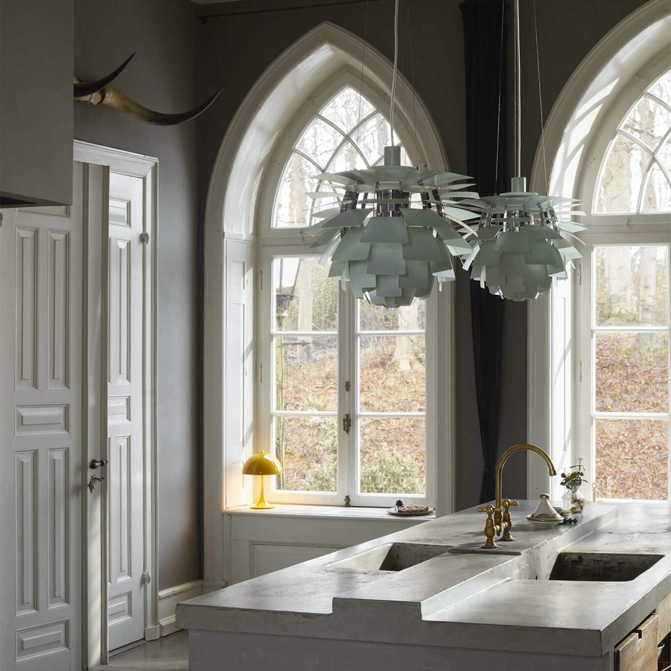 La marque danoise Louis Poulsen a été créée en 1874, née de la tradition du design scandinave où la forme suit la fonction. Louis Poulsen devient le propriétaire de l’entreprise en 1906 après la mort de son oncle Ludvig R. Poulsen. L’approche de Louis Poulsen au développement architectural a commencé grâce à sa collaboration avec l’un des concepteurs lumière reconnu dans le monde, Poul Henningsen. C’est donc en 1924 que le designer débute sa collaboration avec Louis Poulsen lighting. Leur objectif est la participation à « l’exposition internationale des arts décoratifs et industriels modernes ». En 1925, la collaboration porte ses fruits et les lampes Poul Henningsen remportent la médaille d’or. Suite à cette victoire, les deux hommes commercialisent leurs produits en France, en Angleterre et au Danemark.