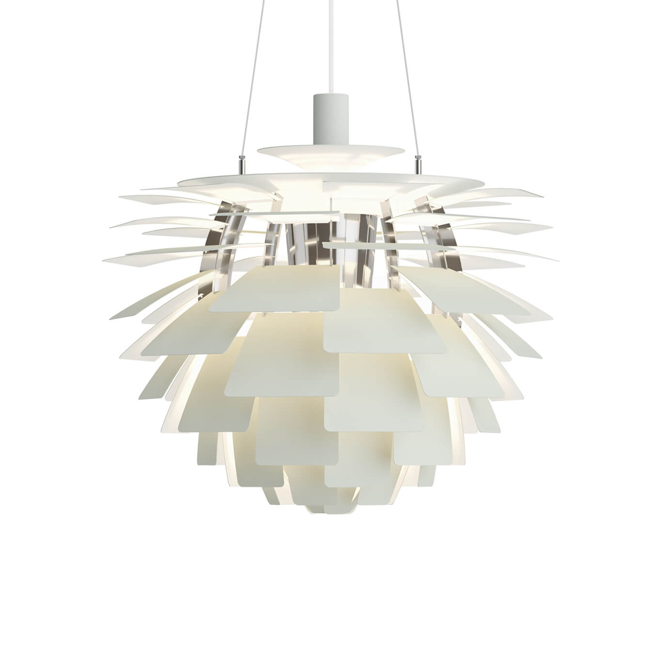 Quand Poul Henningsen dessine l’emblématique PH Artichoke pour le restaurant Langelinie Pavillonen de Copenhague en 1958, il opte pour des lamelles en cuivre avec une finition rose sur l’intérieur. Avec cette association, la PH Artichoke est exceptionnellement chaleureuse et réfléchit superbement la lumière de sa source lumineuse masquée. La PH Artichoke produit un éclairage doux et anti-éblouissant. Son design et sa structure complexes font en sorte que la lumière se répartisse uniformément dans la pièce. Editée par Louis Poulsen, la suspension PH Artichoke est considérée aujourd'hui comme un classique du design.