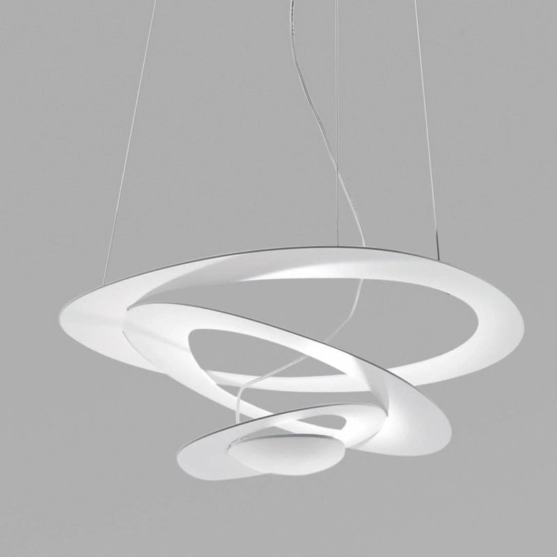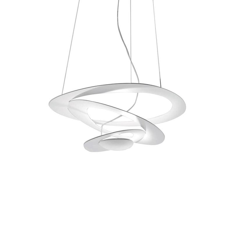 Pirce Micro est une suspension au design aérien, imaginée par Giuseppe Maurizio Scutellà pour Artemide. Un disque mince est découpé pour donner naissance à des volutes flottantes qui retombent doucement vers le bas en créant des effets magiques de lumière et de forme. Disponible en finition blanc, or ou noir, cette suspension apporte une touche sculpturale à votre intérieur.