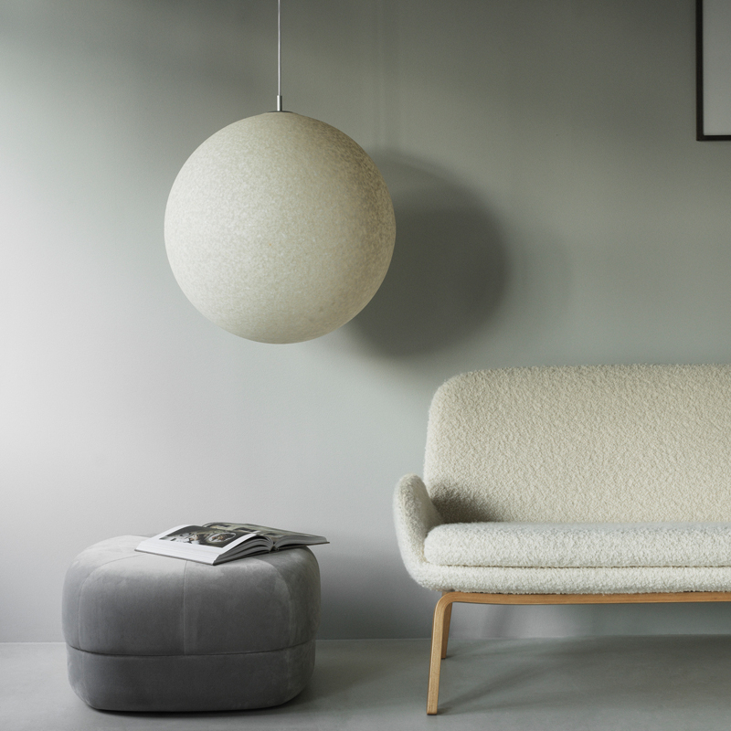 La suspension Pix n'est pas seulement un luminaire esthétique, c'est aussi un design ingénieux. Pour la fabrication de l'abat-jour, des déchets plastiques de différentes nuances de blanc sont mélangés et granulés, avant d'être chauffés à un point de fusion de 120°, permettant au matériau d'être réchauffé et réutilisé en fin de vie sans altérer ses propriétés. L'épaisseur du matériau donne à la Pix un aspect opaque lorsque la lumière est éteinte. Lorsque la lumière est allumée, l'apparence du matériau se transforme, obtenant un aspect translucide, la lumière de l'ampoule traversant et mettant en valeur la structure granulée de l'abat-jour. Quel que soit l'endroit où elle se trouve, la suspension Pix Normann Copenhagen se fondra à coup sûr dans l'intérieur environnant, tandis que son abat-jour distinctif offre une lueur chaleureuse et charismatique.