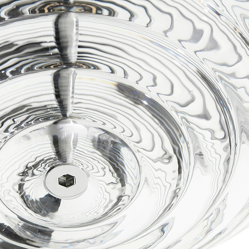 Press Sphere est fabriquée en déversant des boules de verre fondu à une température de 1200 degrés Celsius, qui sont ensuite pressées dans des moules en fer sous une forte pression, garantissant ainsi la durabilité exceptionnelle de ces luminaires. La