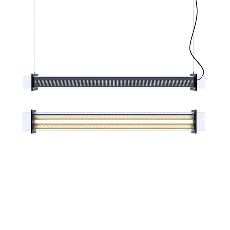 Dessinée par Jean-Michel Wilmotte pour la marque Sammode, Quadratube P1 est une suspension à la silhouette élégante qui se décline en deux longueurs (130 cm ou 160 cm). En plus d’un éclairage direct, ses perforations rectangulaires rappelant les persiennes diffusent subtilement la lumière sur les côtés, créant une ambiance douce et agréable. Bien au-delà de l’objet lumineux, la suspension Quadratube intègre un module LED et un réflecteur pour une qualité d’éclairage et un confort visuel remarquables. L’intégration du câble d’alimentation dans une encoche en partie supérieure témoigne de l’attention particulière portée aux détails. La collection Quadratube Sammode comprend différents modèles d’appliques et de suspensions pour s’adapter à tous les espaces.
