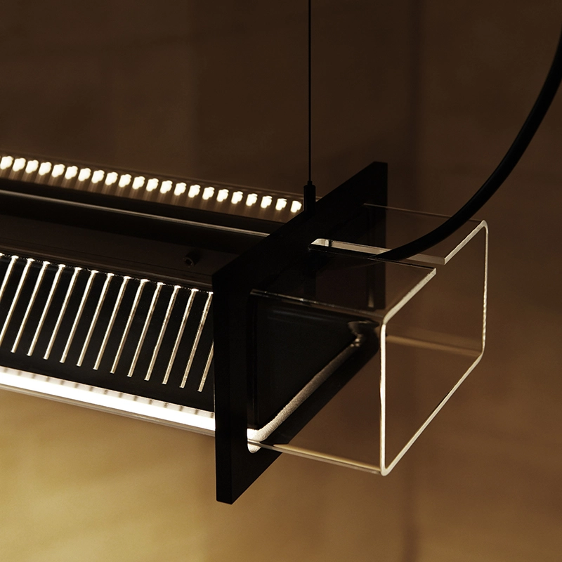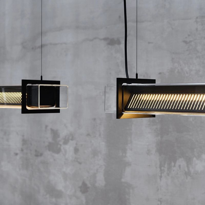 Dessinée par Jean-Michel Wilmotte pour la marque Sammode, Quadratube P1 est une suspension à la silhouette élégante qui se décline en deux longueurs (130 cm ou 160 cm). En plus d’un éclairage direct, ses perforations rectangulaires rappelant les persiennes diffusent subtilement la lumière sur les côtés, créant une ambiance douce et agréable. Bien au-delà de l’objet lumineux, la suspension Quadratube intègre un module LED et un réflecteur pour une qualité d’éclairage et un confort visuel remarquables. L’intégration du câble d’alimentation dans une encoche en partie supérieure témoigne de l’attention particulière portée aux détails. La collection Quadratube Sammode comprend différents modèles d’appliques et de suspensions pour s’adapter à tous les espaces.