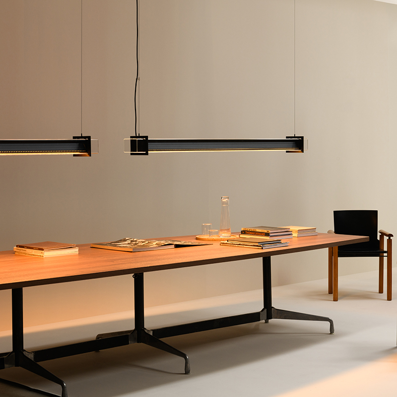 Avec sa silhouette rectangulaire effilée soutenue par deux filins et son intégration discrète du câble d’alimentation, la suspension Quadratube P2 Sammode illustre la rencontre de l’esthétisme et de la fonction. Cette suspension signée Jean-Michel Wilmotte éclaire d’une lumière douce et confortable les espaces résidentiels comme les espaces professionnels, grâce à son module LED intégré, son réflecteur et sa grille anti-éblouissement. Les perforations de sa grille de défilement créent des points lumineux latéraux qui diffusent la lumière de manière subtile et captivante. La collection Quadratube Sammode comprend différents modèles d’appliques et de suspensions pour s’adapter à tous les espaces.