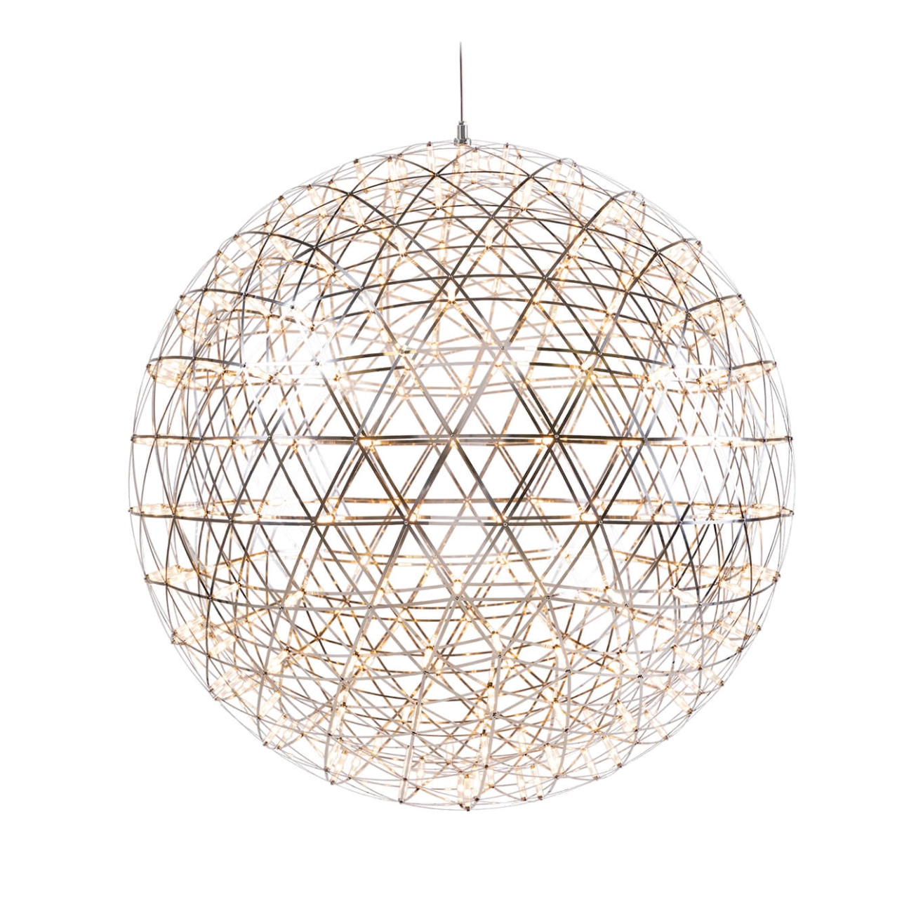 Raimond Puts réalise avec OX-ID cette suspension lumineuse pour Moooi. La structure est en acier inoxydable sur laquelle sont fixées 252 LED. Sculpture suspendue le jour, elle devient une constellation lumineuse dans le noir. Suspendue comme en apesanteur par un câble électrique transparent, Raimond diffusera des jeux d'ombres insolites au dessus du lit ou dans votre salon.