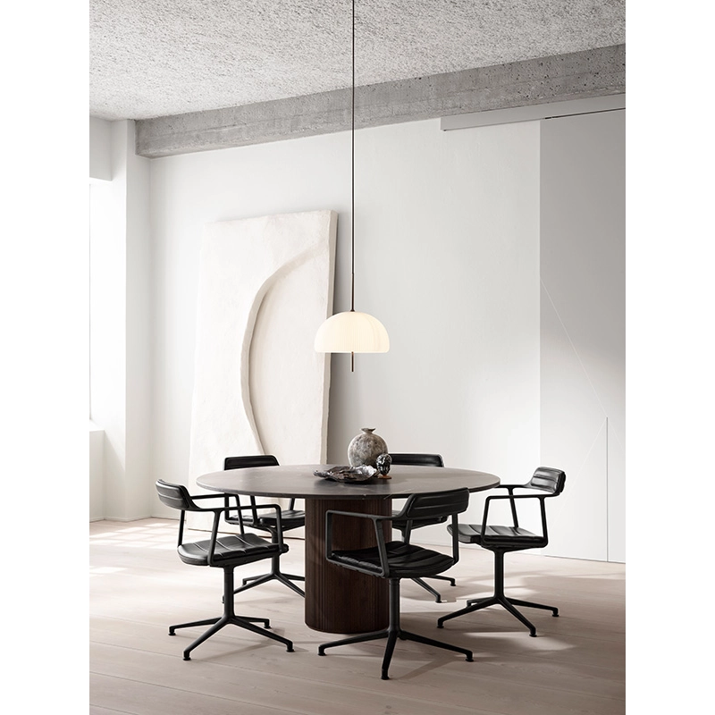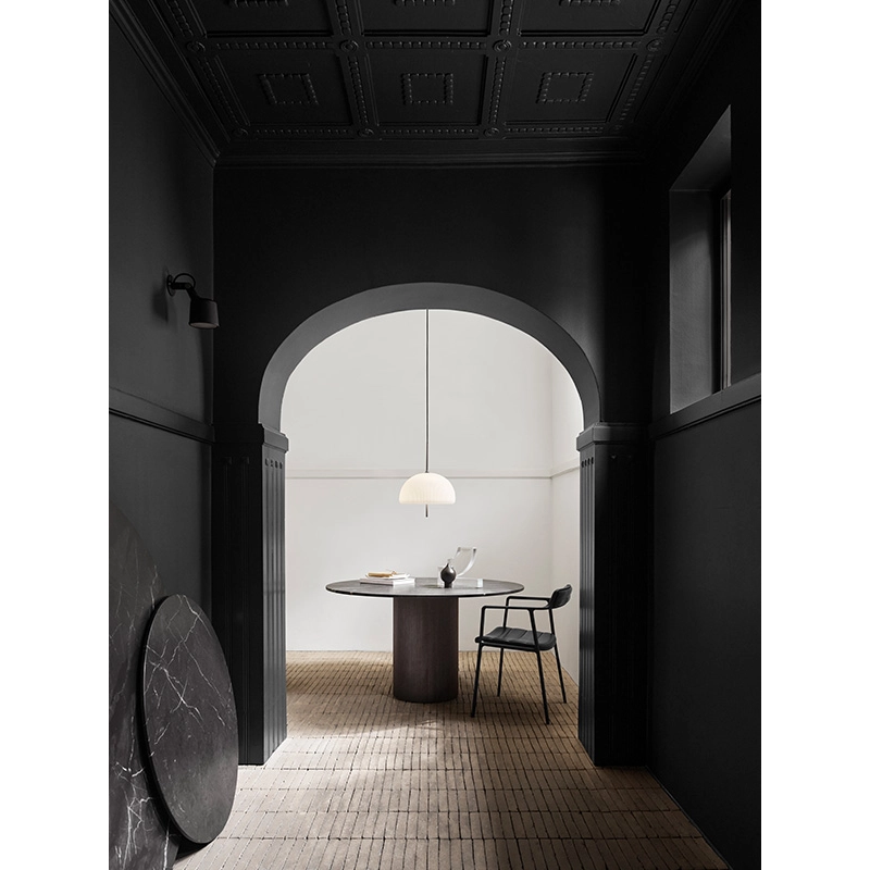 La suspension Sculpture Vipp est idéale pour éclairer agréablement différents espaces, car elle convient à de nombreux types de pièces. Elle peut être utilisée au-dessus dans une cuisine, une salle à manger ou un salon. Les détails techniques et la lumière doucement diffusée à travers trois couches de verre soufflé à la bouche apportent un éclairage sophistiqué aux réunions autour de la table. D'anciennes techniques de soufflage à la bouche ont été utilisées pour façonner l'abat-jour en verre de la suspension Sculpture Vipp. La composition raffinée des couches internes de verre blanc et des couches externes givrées génère une surface opaque et assure une distribution uniforme et agréable de la lumière.