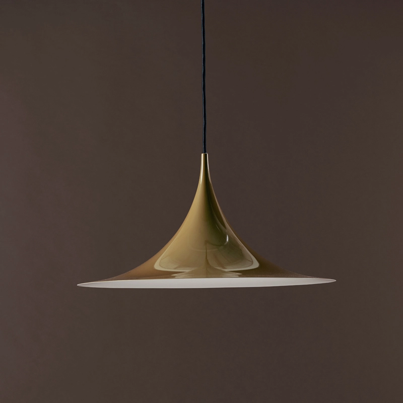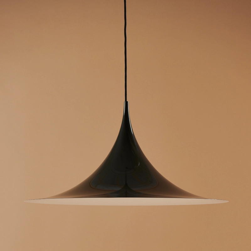 La suspension Semi Pendant a été dessinée en 1968 par un duo créatif d'étudiants en architecture : Claus Bonderup et Torsten Thorup. Réagissant contre « l'ère cosy » qui dominait au Danemark à cette époque, le duo a voulu créer une lampe faite de lignes claires, géométriques et aiguisées. Le résultat est une suspension unique au design intemporel, réalisée en métal émaillé. Semi Pendant, éditée par Gubi, a reçu le premier prix de la Royal Danish Academy of Fine Arts School of Architecture. Idéale placée au-dessus d'une table de salle à manger, elle est disponible plusieurs tailles et finitions.