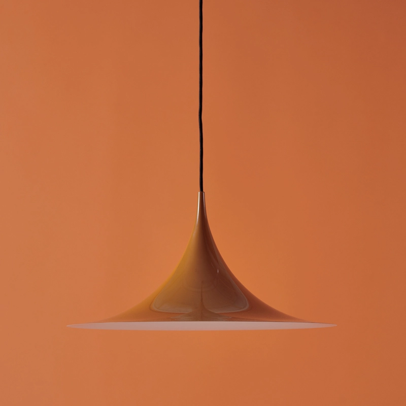 La suspension Semi Pendant a été dessinée en 1968 par un duo créatif d'étudiants en architecture : Claus Bonderup et Torsten Thorup. Réagissant contre « l'ère cosy » qui dominait au Danemark à cette époque, le duo a voulu créer une lampe faite de lignes claires, géométriques et aiguisées. Le résultat est une suspension unique au design intemporel, réalisée en métal émaillé. Semi Pendant, éditée par Gubi, a reçu le premier prix de la Royal Danish Academy of Fine Arts School of Architecture. Idéale placée au-dessus d'une table de salle à manger, elle est disponible plusieurs tailles et finitions.