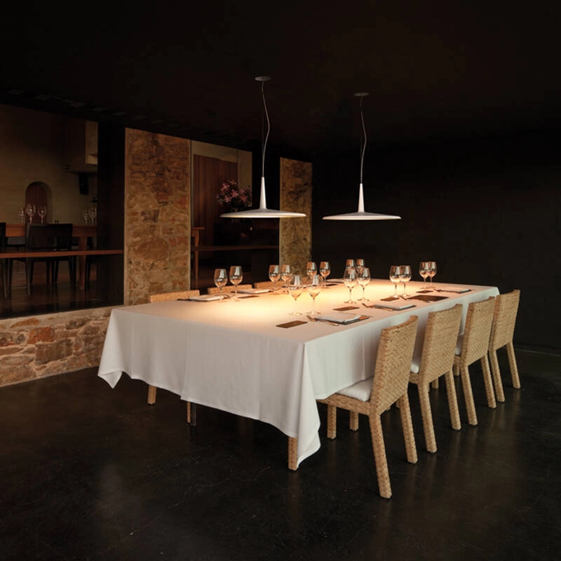 Les luminaires Skan ont été conçus par Lievore, Altherr et Molina, et sont édités par Vibia. Skan, c’est un retour à la finesse, à la simplicité et à la légèreté, tant par la forme que par le matériau. Les luminaires Skan apportent élégance et minimalisme à la pièce qu’ils décorent, grâce à leur silhouette géométrique et leur structure aux lignes épurées et aux courbes douces. La simplicité et la pureté de la forme des luminaires Skan se prêtent à de multiples décors, du plus classique au plus contemporain. Les suspensions Skan projettent vers le bas un éclairage ample et lumineux qui définit des pièces à vivre telles que les salles à manger, les salons ou les cuisines ouvertes, tout en apportant une touche de design. Les lampadaires Skan apportent quant à eux davantage de caractère et de modernité aux salons et coins lecture, mais aussi aux bureaux et aux pièces de réception.
