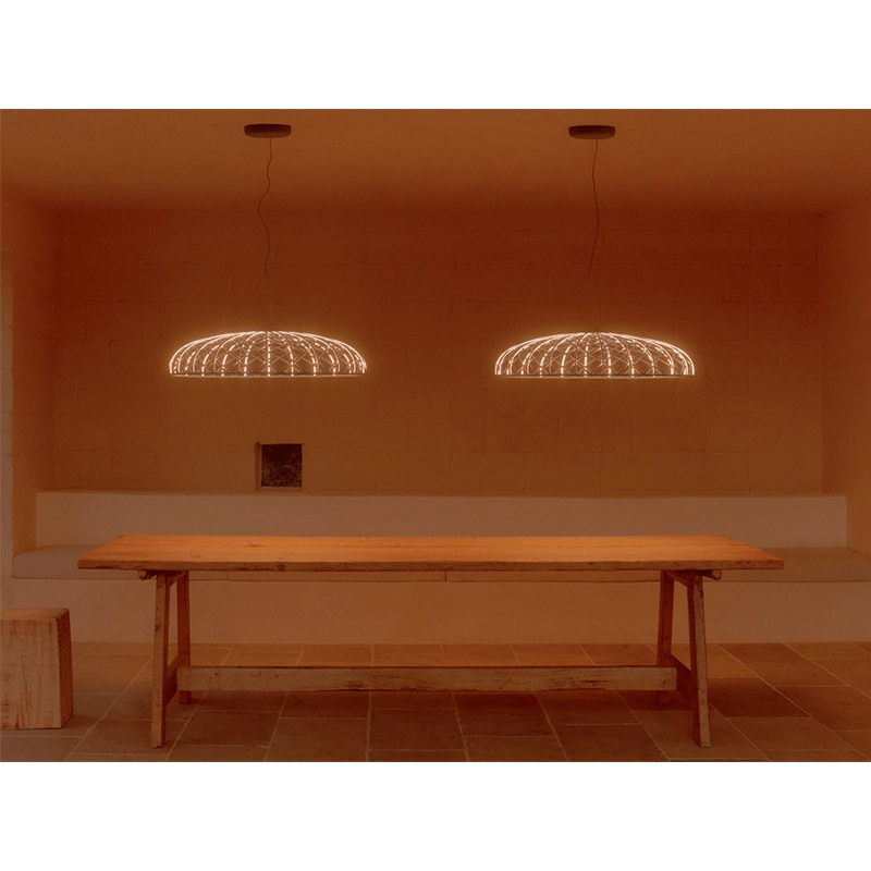 La suspension Skynest créée par Marcel Wanders et éditée par Flos, présente un design original. Avec sa forme et ses différentes déclinaisons de couleurs, elle apporte une touche graphique et sculpturale dans les intérieurs. La suspension Skynest illumine une pièce de façon optimale grâce à son système d’éclairage et reste stable par son système d’équilibrage intégré dans la partie supérieure de la coupole. Ainsi, Skynest de Flos est une suspension à la fois originale et élégante.
