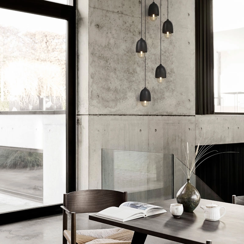 La collection de luminaires Terho a été conçue par la designer Maija Puoskari pour la marque Mater. Inspirée par nature, Terho signifie « gland » en finnois et fait référence à la forme organique que l’on trouve dans la nature. La douceur et la beauté de la forme combinée avec le verre en fait un objet à la fois contemporain et intemporel. La collection Terho consiste en trois tailles de suspensions qui se déclinent en deux finitions : noir avec un diffuseur fumé ou naturel avec du verre blanc opalin. Le bois utilisé est certifié FSC, provenant de forêts européennes responsables, tandis que le verre est soufflé à la bouche en Pologne. Terho est un luminaire durable, autant pour un usage privé que public.