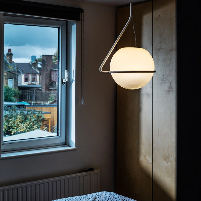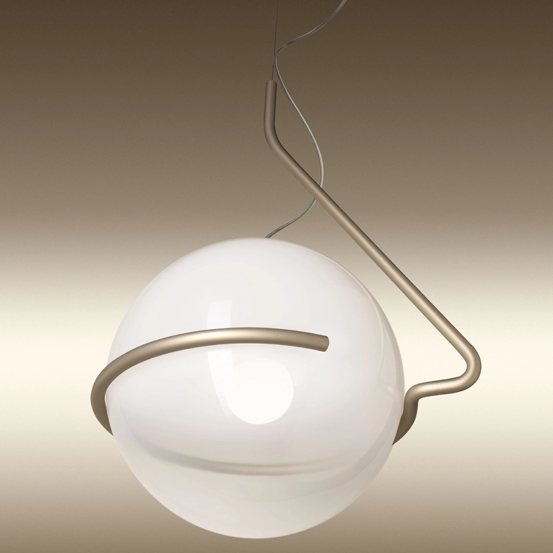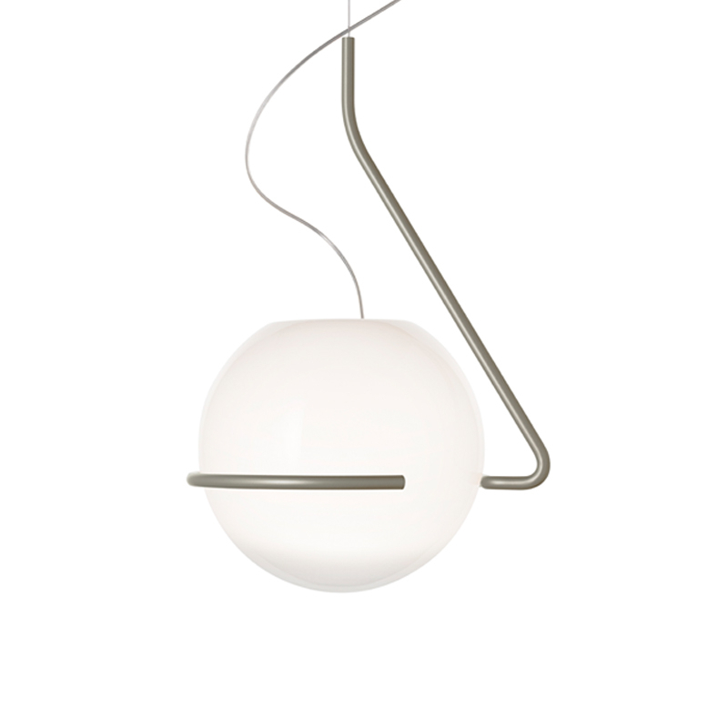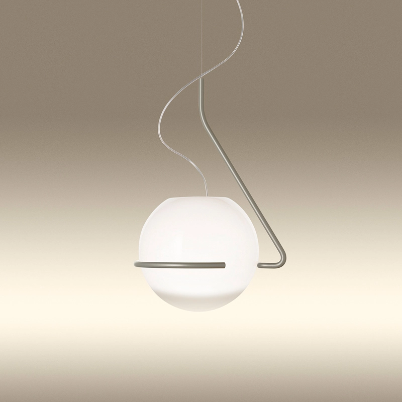 La suspension Tonda de Foscarini offre un éclairage doux et diffus. Cette pièce sculpturale est fabriquée en verre opalin soufflé à la bouche, présentant une transition de blanc transparent en haut à transparent en bas. La maîtrise du verrier est essentielle pour capturer la combinaison exacte de blanc et de transparence afin d'obtenir la nuance recherchée. La sphère de la suspension Tonda repose librement sur une structure métallique décalée, composée d'une tige d'acier brossé et poli à la main, revêtue d'une finition brillante en poudre. Le câble en acier qui soutient la suspension Tonda est fixé à l'extrémité du cadre. La suspension Tonda crée un jeu sophistiqué d'équilibre et de mouvement entre la sphère en verre soufflé à la bouche, aux nuances ombrées, et son support métallique qui l'entoure sans l'enfermer.