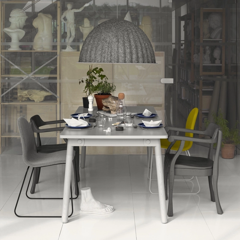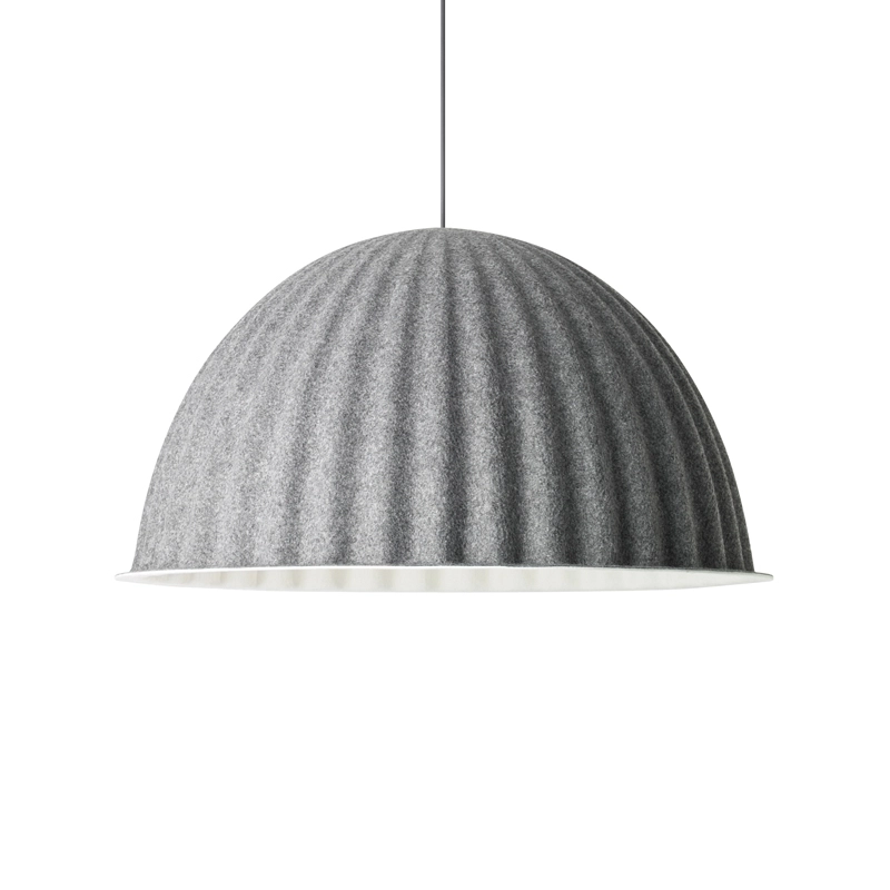 Under The Bell ? « sous la cloche », est une suspension aux dimensions imposantes, dessinée par Iskos Berlin pour l'éditeur Muuto. Ce luminaire design fonctionne aussi bien proche du plafond pour éclairer largement la pièce, ou positionné plus bas au-dessus d'une table. Le feutre de PET moulé qui constitue l'abat jour permet d'améliorer également l'acoustique de la pièce.