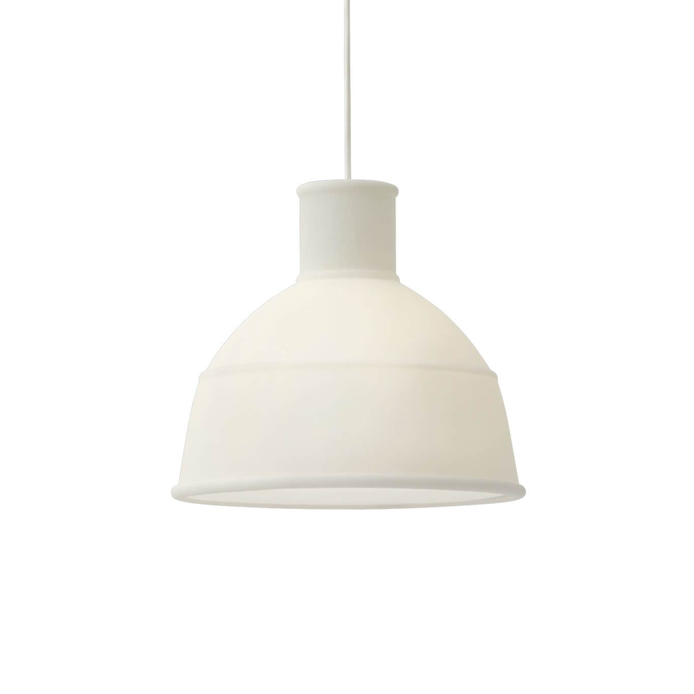 La suspension Unfold est une création du studio Form Us With Love, éditée par Muuto. Le diffuseur est en caoutchouc, matériau rarement utilisé pour les luminaires. La suspension possède la forme rigide d'une lampe d'usine tout en étant étonnamment souple. Pliée, Unfold prend très peu de place et il suffit simplement de la déployer pour l'installer. Le matériau donne à cette suspension un effet chaleureux et une lumière toute en douceur.