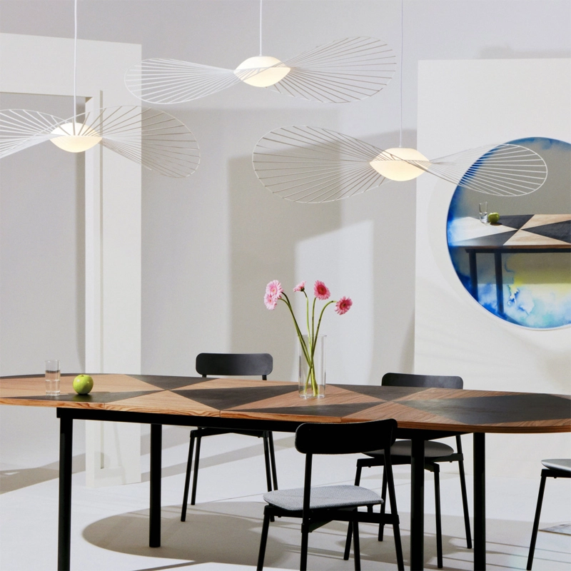 Petite Friture célèbre ses 10 ans et signe avec Constance Guisset, duo complice et exigeant depuis le début, un nouveau chapitre de l’iconique suspension Vertigo avec le Vertigo Nova : des choix techniques audacieux pour une création sophistiquée. Une collection complète de pièces fortes et dimmables, qui se déclinent en lampadaire, suspension et lampe murale. La grande nappe graphique repose sur un verre soufflé, libérant un éclairage d’une grande douceur avec technologie LED intégrée. Un noir et blanc subtil : opalin blanc sur sa structure blanche, fumé sur sa structure noire pour une sophistication extrême. Les suspensions Vertigo Nova frémissent au gré des vibrations de l’air grâce à une structure sinusoïdale composée d'arceaux en fibre de verre assemblés et fabriqués en France. Cette lampe sculpture du nom d’une étoile intrigue par sa ligne et son mouvement, séduit par son allure. « la suspension vertigo Nova est née du désir de travailler la lumière de l’objet pour l’adoucir et la graduer. La partie technique est désormais aspirée dans un verre sablé mystérieux.  La fonction de la lampe est sublimée pour ne laisser apparaître que l’essentiel, une nappe volante entre deux eaux, légère et délicate. »  Constance Guisset. Vertigo Nova signe l’équilibre parfait entre technologie et élégance. Une lampe design singulière propice à la rêverie, incarnant la libre garde et l’exigence défendues par Petite Friture.
