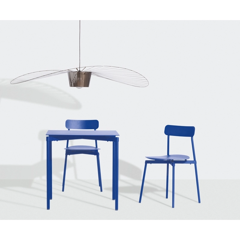 suspension Vertigo de Petite friture est une « lampe-cabane » enveloppante qui suggère un espace d'intimité. Allumée, la lampe projette un motif ombré sur les murs environnants et apporte une atmosphère chaleureuse et poétique aussi bien dans la chambre qu'au-dessus de la table de la cuisine. Modulable en hauteur, la