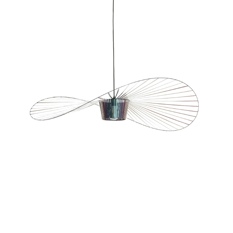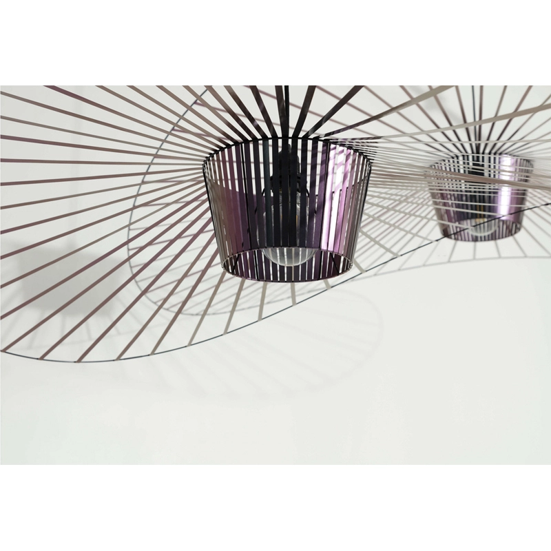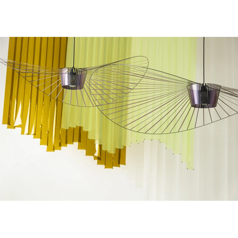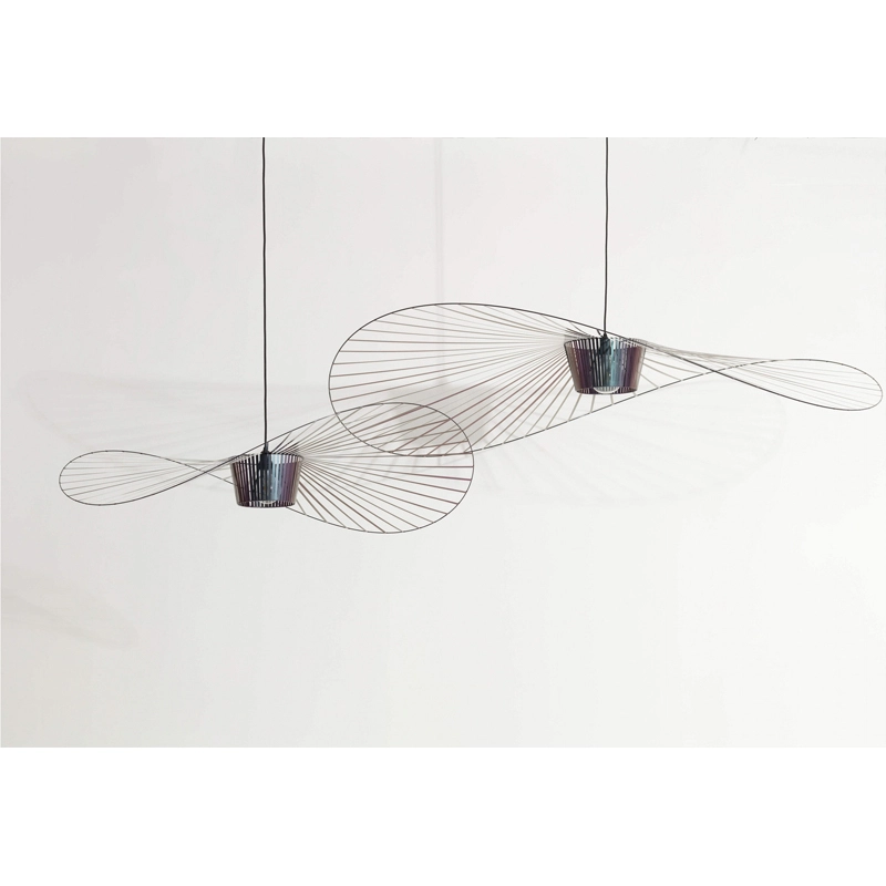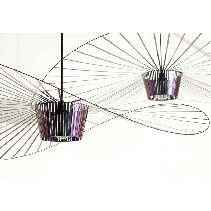Dessinée par Constance Guisset pour Petite Friturela suspension Vertigo représente un incontournable du design d'aujourd'hui. En effet, Vertigo fut reconnu très tôt par Rossana Orlandi et a ainsi intégré de nombreuses collections permanentes prestigieuses telles que celle du MoMA, du Cap et du MAD. Ce luminaire design a également connu un enthousiasme rapide auprès du public. La suspension Vertigo est disponible en plusieurs tailles et couleurs, ce qui la rend adaptable à tous les intérieurs. Elle peut être utilisée comme éclairage principal ou comme élément décoratif. Vertigo est une véritable sculpture lumineuse graphique qui joue sur les ombres portées et dessine un espace graphique comme suspendu entre le sol et le plafond. Cette suspension très légère se meut au rythme des courants d'air. La suspension Vertigo de Petite friture est une « lampe-cabane » enveloppante qui suggère un espace d'intimité. Allumée, la lampe projette un motif ombré sur les murs environnants et apporte une atmosphère chaleureuse et poétique aussi bien dans la chambre qu'au-dessus de la table de la cuisine. Modulable en hauteur, la lampe Vertigo se fond naturellement dans son environnement, et s’adapte à différentes configurations. Une fois allumée, la suspension Vertigo magnifie la lumière et projette un joli motif ombré sur les murs de la pièce. Sa disposition permet un éclairage à la fois diffus et intense. La suspension Vertigo est une icône de Petite Friture, qui combine fer, fibre de verre et des rubans posés à la main en polyuréthane. Cette émulsion des matériaux permet un véritable travail sur la forme, le volume, la matière…  Vertigo habille les grands espaces par sa présence singulière et onirique. L’esthétique de cette suspension fait écho aux caractéristiques de la maison Petite Friture : graphisme, détail et finition.