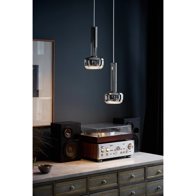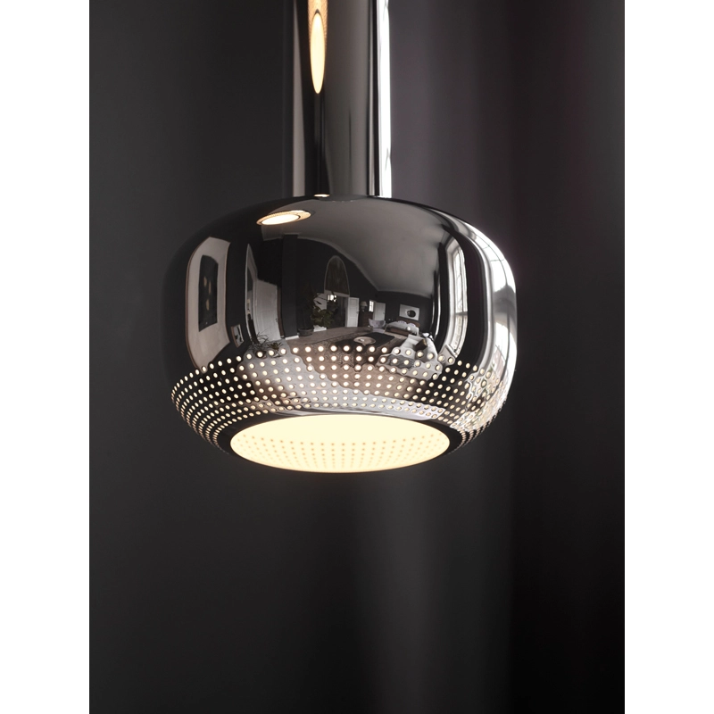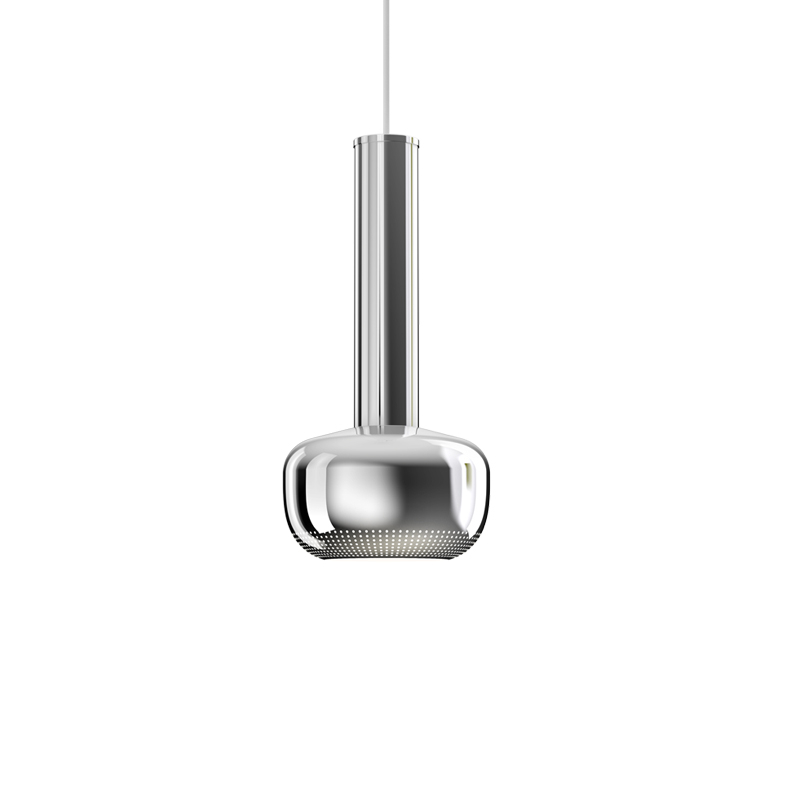 VL 56 est une suspension raffinée, dessinée par Vilhelm Lauritzen et éditée par Louis Poulsen. La suspension VL 56 a été conçue pour Folkets Hus, à Vesterbro Copenhagen. Cconstruit à l’origine pour un syndicat danois, le bâtiment a ouvert en 1956 et il est désormais utilisé en tant que salle de concert nommée Vega. La suspension VL 56 est l’une des lampes Vilhelm Lauritzen conçues pour Vega et, à ce jour, elle est suspendue au-dessus du bar, à côté de la salle de concert. Louis Poulsen réintroduit en 2023 les versions chrome et laiton, avec de légers ajustements et améliorations. La suspension VL 56 émet une lumière non éblouissante dirigée vers le bas. Les perforations autour de l’ouverture créent un beau motif sur l’abat-jour et sur les surfaces environnantes, tout en apportant une transition plus douce entre la lumière et l’obscurité. Les surfaces en laiton de la VL 56 ne sont pas traitées. Ainsi la surface changera au fil du temps et prendra une belle patine.