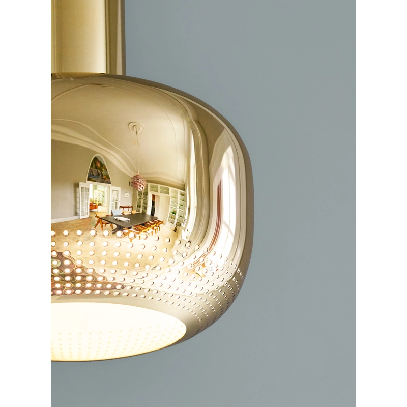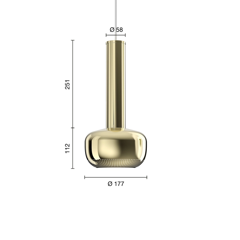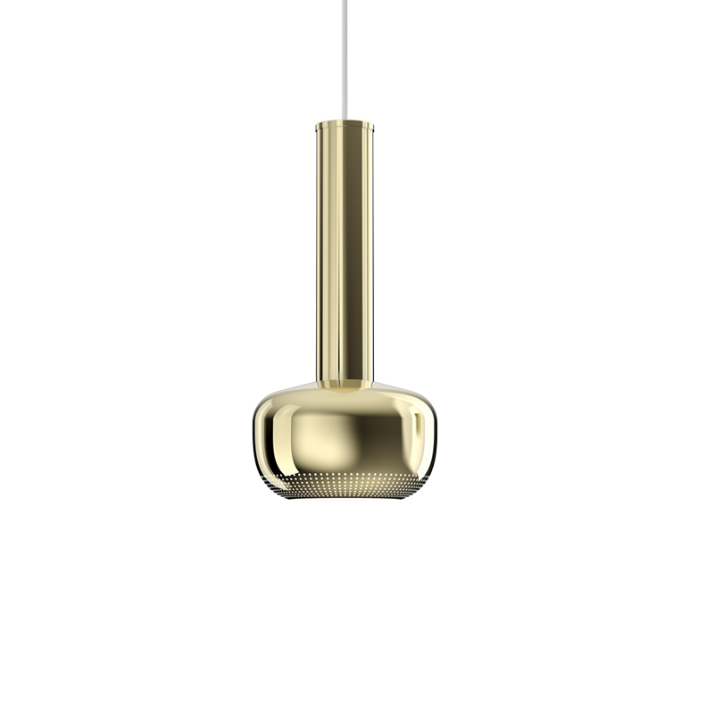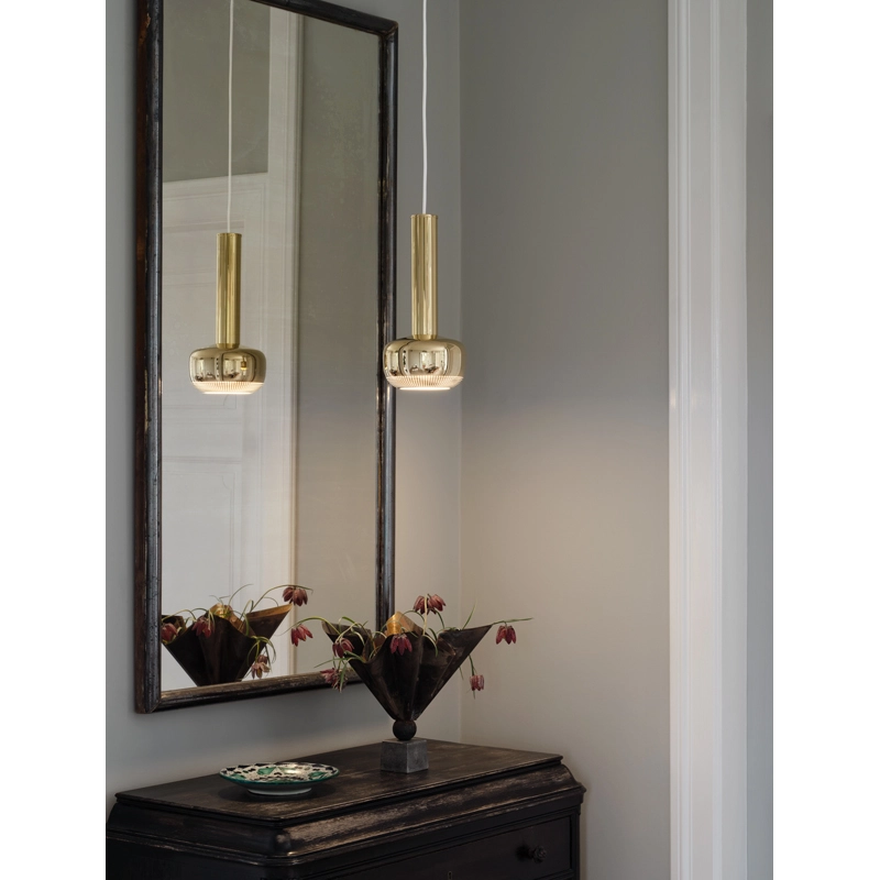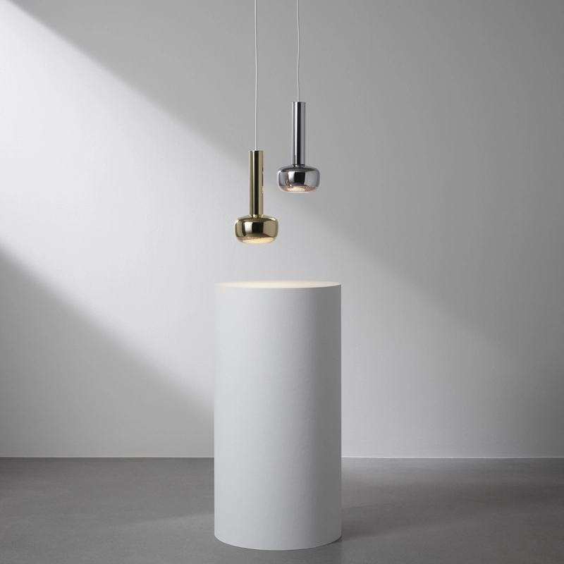 VL 56 est une suspension raffinée, dessinée par Vilhelm Lauritzen et éditée par Louis Poulsen. La suspension VL 56 a été conçue pour Folkets Hus, à Vesterbro Copenhagen. Cconstruit à l’origine pour un syndicat danois, le bâtiment a ouvert en 1956 et il est désormais utilisé en tant que salle de concert nommée Vega. La suspension VL 56 est l’une des lampes Vilhelm Lauritzen conçues pour Vega et, à ce jour, elle est suspendue au-dessus du bar, à côté de la salle de concert. Louis Poulsen réintroduit en 2023 les versions chrome et laiton, avec de légers ajustements et améliorations. La suspension VL 56 émet une lumière non éblouissante dirigée vers le bas. Les perforations autour de l’ouverture créent un beau motif sur l’abat-jour et sur les surfaces environnantes, tout en apportant une transition plus douce entre la lumière et l’obscurité. Les surfaces en laiton de la VL 56 ne sont pas traitées. Ainsi la surface changera au fil du temps et prendra une belle patine.