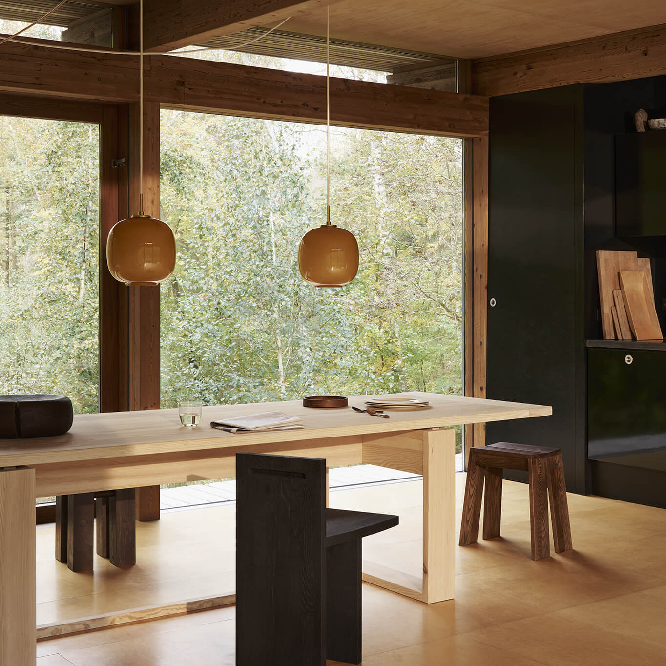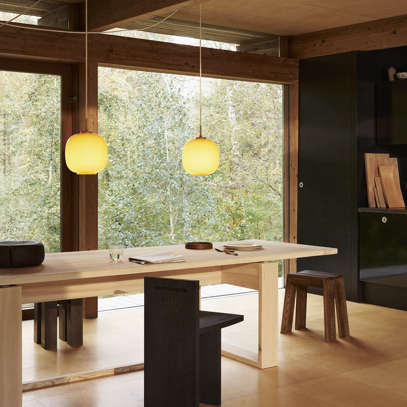 En 2016, la suspension Radiohus Pendant fait son retour sous l’appellation VL45 Radiohus Pendant. Elle avait été dessinée dans les années 1940 par l’architecte danois Vilhelm Lauritzen en partenariat avec Louis Poulsen pour la construction de la maison de la radio à Copenhague (Radiohuset). La suspension respecte le dessin d’origine, avec un support en laiton et un abat-jour de trois couches de verre soufflé. Les couches externe et interne sont constituées de verre poli transparent, tandis que la couche intermédiaire est réalisée en verre blanc. Le luminaire fournit une lumière homogène et diffuse.