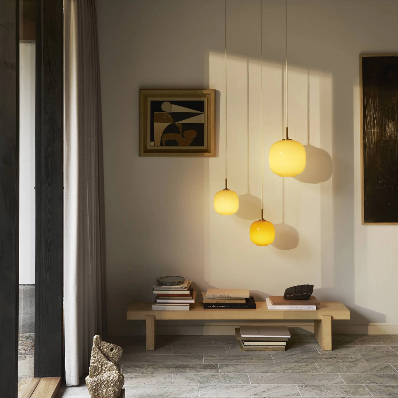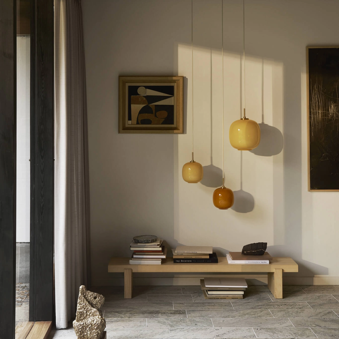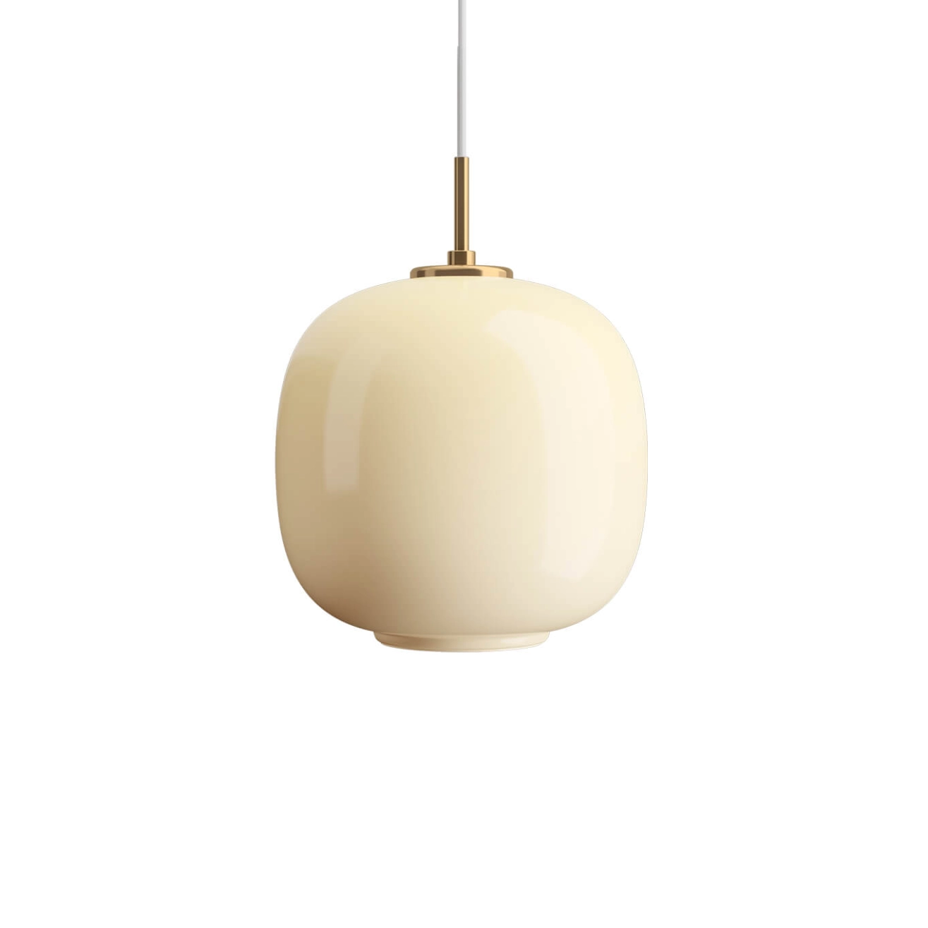 En 2016, la suspension Radiohus Pendant fait son retour sous l’appellation VL45 Radiohus Pendant. Elle avait été dessinée dans les années 1940 par l’architecte danois Vilhelm Lauritzen en partenariat avec Louis Poulsen pour la construction de la maison de la radio à Copenhague (Radiohuset). La suspension respecte le dessin d’origine, avec un support en laiton et un abat-jour de trois couches de verre soufflé. Les couches externe et interne sont constituées de verre poli transparent, tandis que la couche intermédiaire est réalisée en verre blanc. Le luminaire fournit une lumière homogène et diffuse.