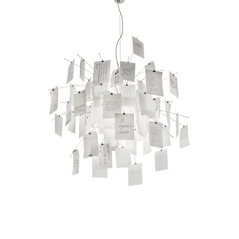 Zettel'Z 5 est une suspension étonnante dessinée par le talentueux Ingo Maurer. Elle est constituée d'une structure réalisée à partir de tiges d'acier au bout desquelles vi ... En savoir plus