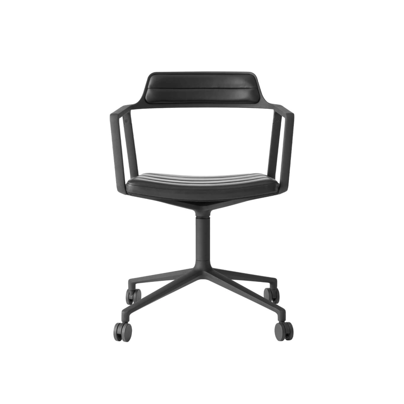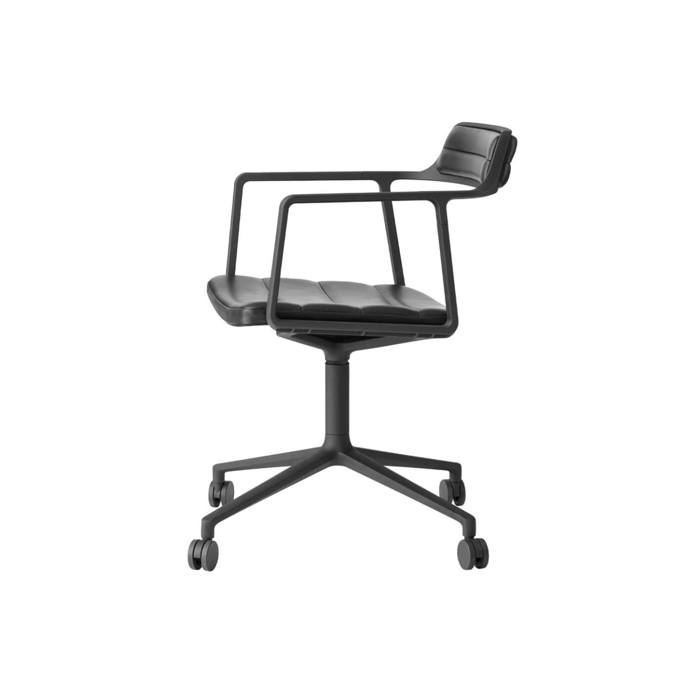 Chaise SWIVEL CHAIR 452 à roulettes Cuir noir / Aluminium peint noir VIPP