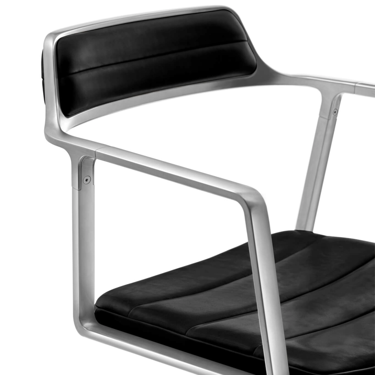 3. SWIVEL CHAIR 452 à roulettes Cuir noir / Aluminium poli