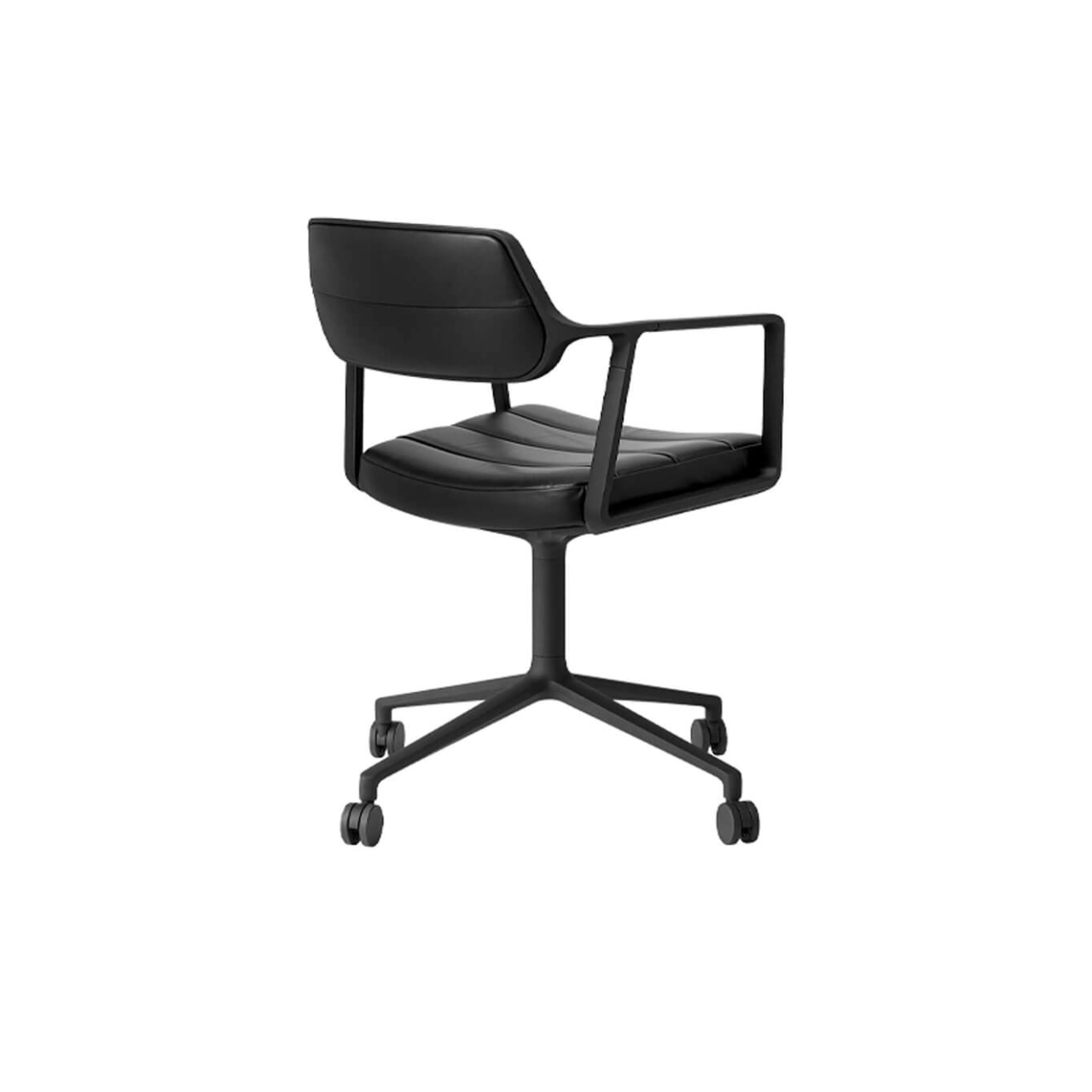 Le fauteuil Swivel Padded 453 de Vipp enrichit la série Swivel en combinant l’assise généreusement rembourrée du Vipp453+ avec la base à quatre pieds du Vipp452. Conçu pour les environnements résidentiels comme professionnels, ce fauteuil offre un équilibre parfait entre confort prolongé, lignes épurées et fonctionnalité. Son large dossier et son siège extra-rembourré assurent un soutien ergonomique optimal, idéal pour les longues heures passées autour d'une table de réunion ou dans un bureau à domicile. Son piètement fixe à quatre branches en aluminium lui confère une grande stabilité tout en conservant une silhouette légère et élégante. Disponible en cuir aniline ou en textile haut de gamme sélectionné par Vipp, le Swivel Padded s’inscrit dans une démarche de design durable et raffiné. Les matériaux nobles utilisés – cuir pleine fleur non traité au chrome et tissus à base de lin et laine – garantissent non seulement une esthétique soignée mais aussi un confort thermique et tactile. « Après l’introduction de la chaise Swivel en 2021, je souhaitais une version offrant le confort de ‘s’asseoir sur un nuage’ », confie Kasper Egelund, CEO et 3e génération à la tête de Vipp. Par son design intemporel, ses finitions de qualité et ses lignes à la fois sobres et accueillantes, le fauteuil Swivel Padded s’impose comme une solution élégante pour ceux qui recherchent une chaise de réunion ou un siège de bureau fixe alliant esthétique et bien-être. Disponible avec différents revêtements sur demande, il s’adapte harmonieusement à chaque espace de travail ou de vie.