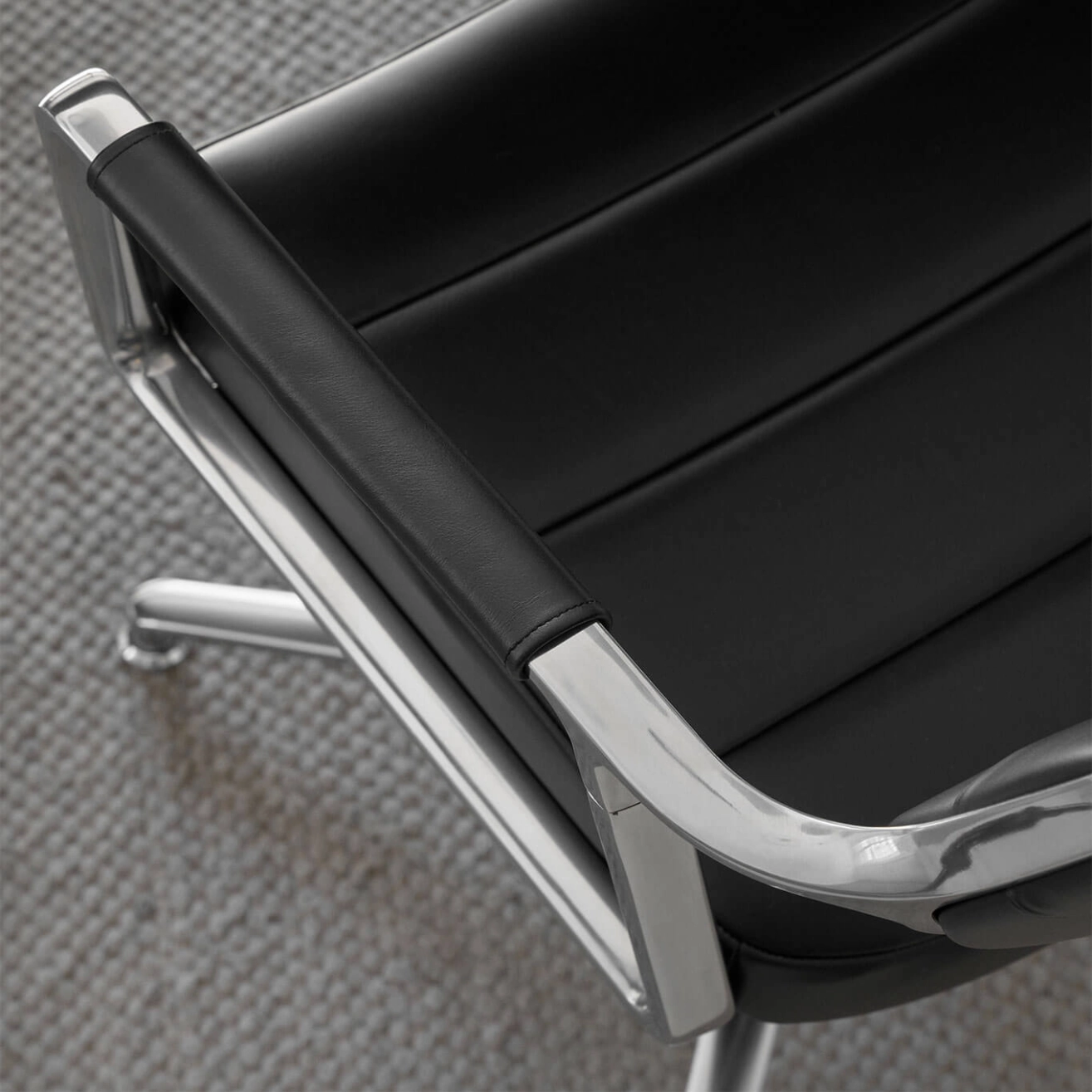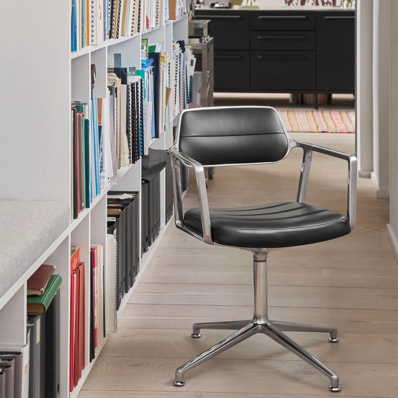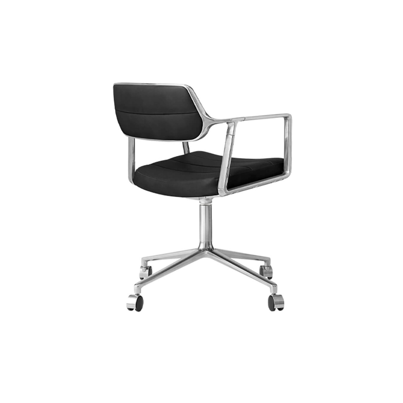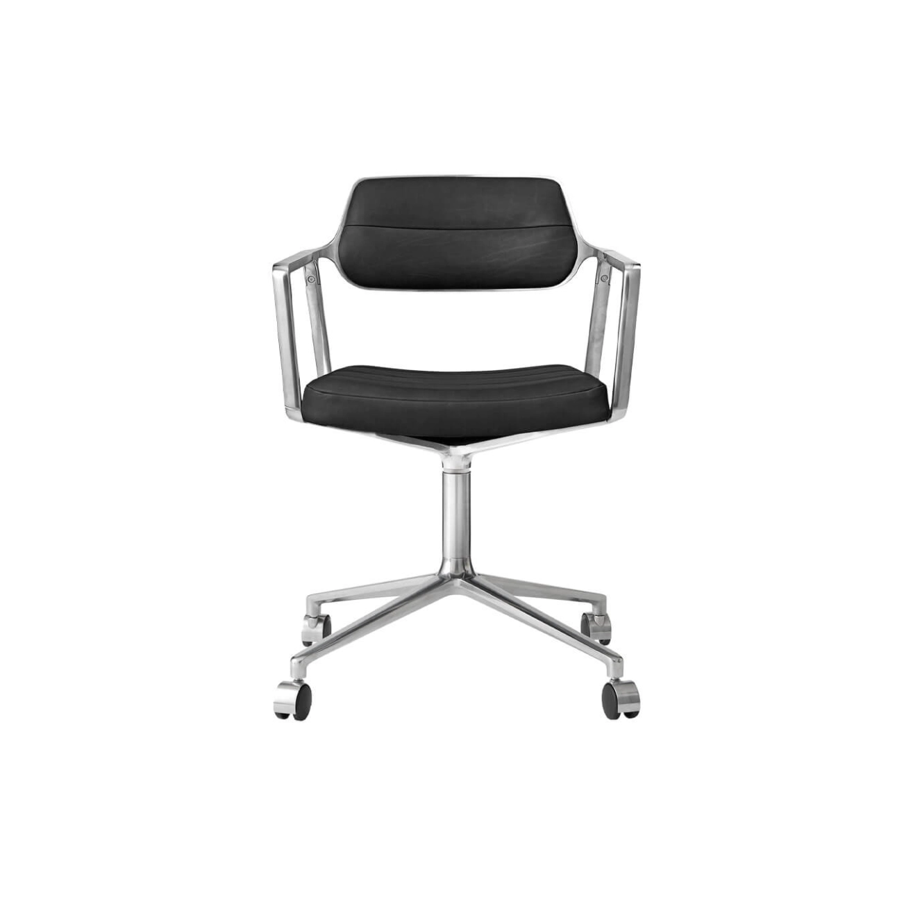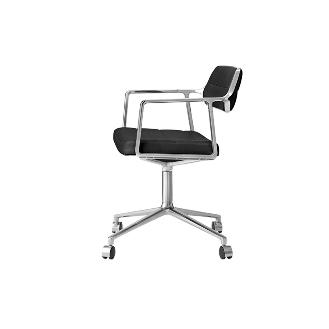 SWIVEL CHAIR 453 à roulettes Cuir noir / Aluminium poli